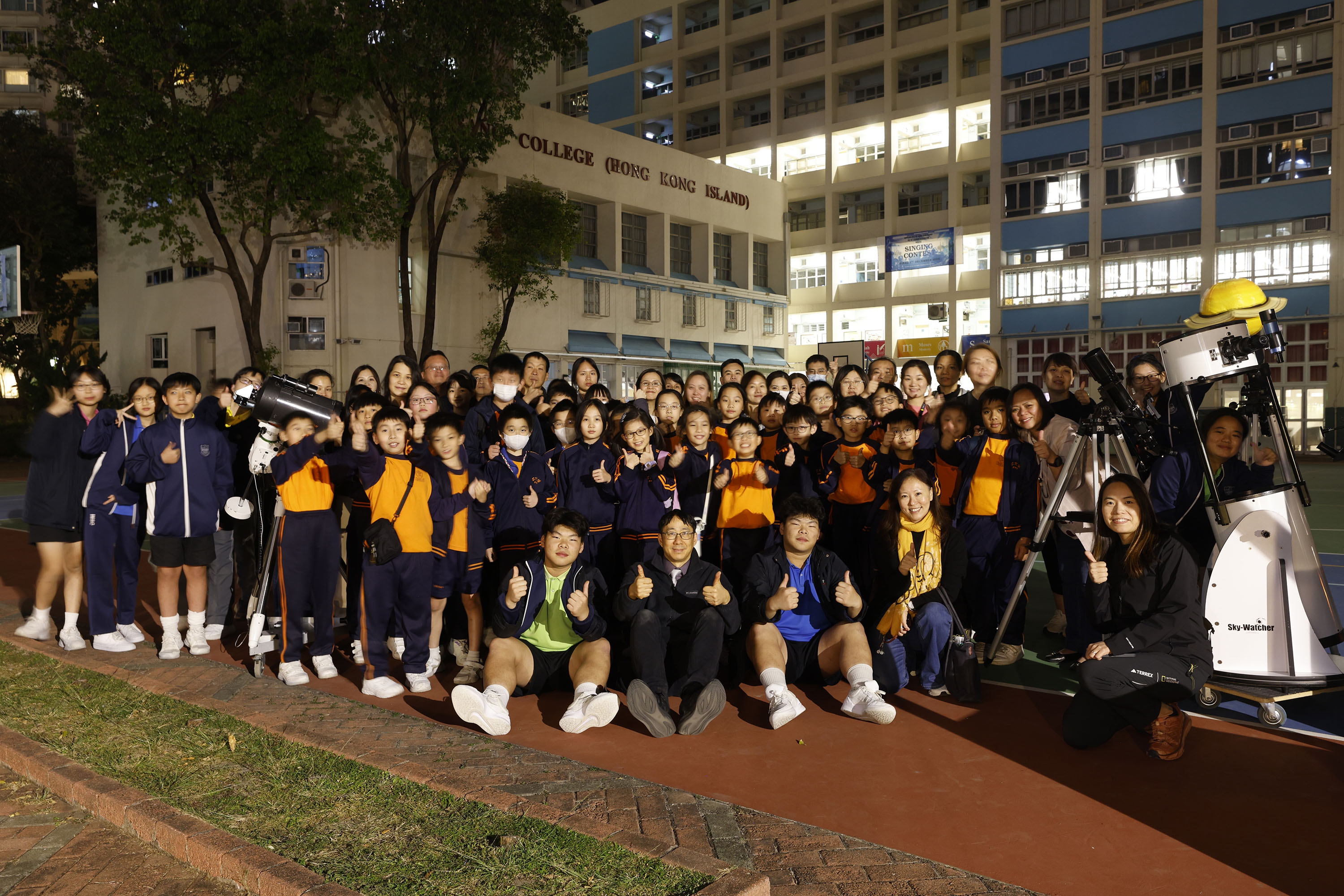 港島民生書院在2025年11月28日晚上,為本校30位小三至小五同學及家長舉辦了一場觀星晚會。當晚港島民生書院梁達榮副校長安排了不同的天文望遠鏡供本校的同學及家長觀月和觀星。梁副校長先簡述秋、冬季的星空,又介紹了織女星、牛郎星等,把星空與傳說扣上,大家聽得津津有味。接著的觀月活動,在12吋高倍的天文望遠鏡下,參加者能親眼看到清晰的月球表面,大家都非常雀躍。除觀月外,另有一支高倍的天文望遠鏡對著土星,讓參加者欣賞16年才出現一次的土星環0傾角現象。梁副校長在中段更配合觀察的星體,利用簡報為同學和家長講解土星環的構造、土星的衞星、月球磒石坑的特點等,讓參加者在隨後再次觀看時,對所看到的影像有著更科學的理解。