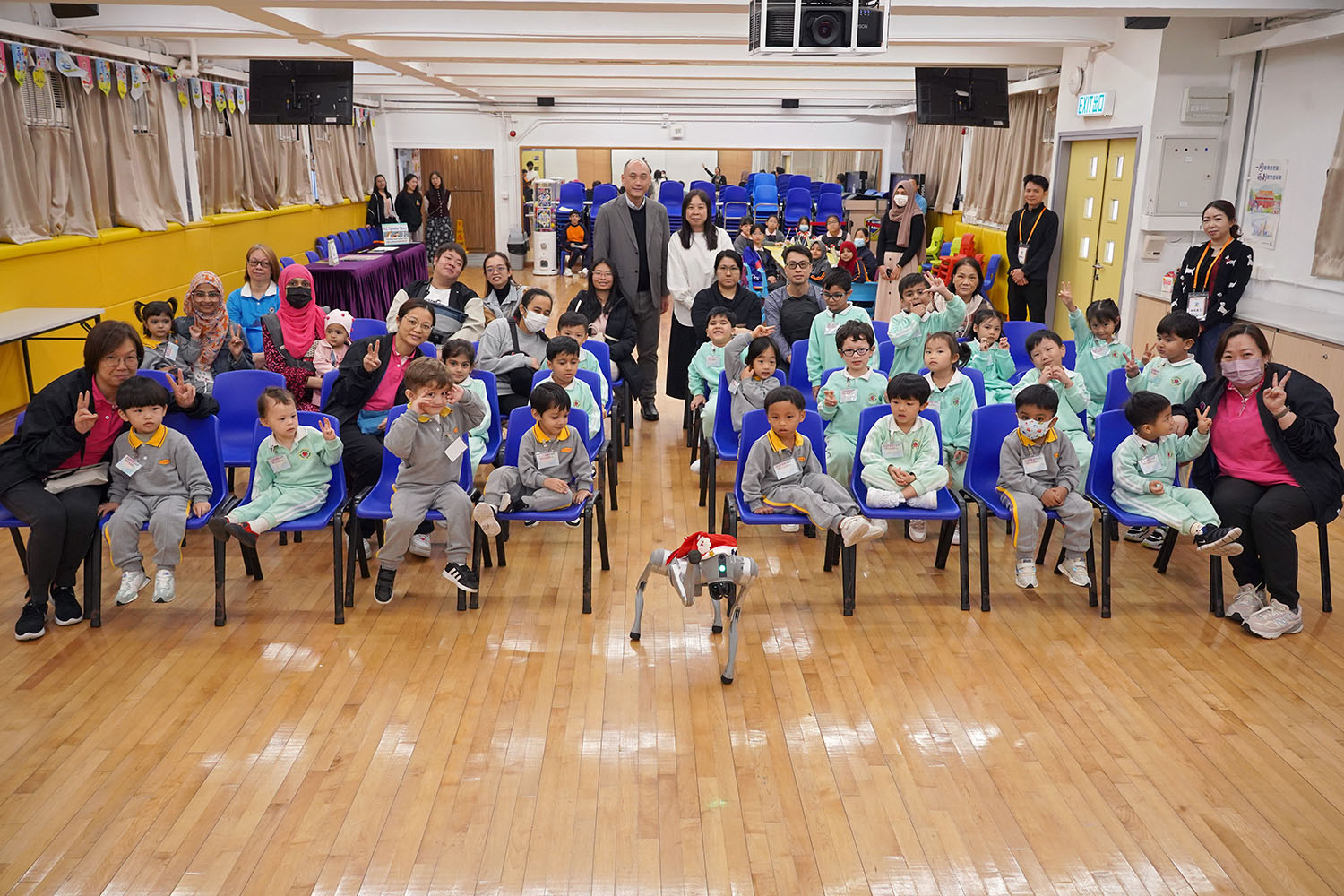 本校於2024年9月21日(星期六)為小一及小二舉行「校園·好精神:至FUN親子樂園」體驗活動,學生除可與家長一起進行不同遊戲,例如:自創夢想樂園、百變畫廊、浮床彈跳樂園、冒險陣地等,他們亦在本校設置的「好精神照相館」拍攝家庭照作留念,以促進身心健康。當天,本校亦邀請了區內幼稚園學生及家長參與,一起體驗本校關愛的校園文化。此外,他們也參與了由體育科老師主持的AI科技體適能活動,並由上屆畢業生帶領學弟學妹指導幼稚園學生進行多個創新的體能測試,一同享受充滿活力的上午。