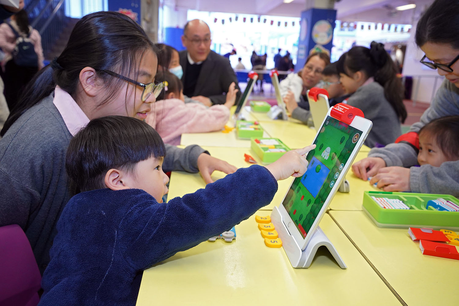 本校於2025年12月13日(星期六)舉行學校簡介會暨「筲官小」數學課堂體驗。當天,王校長為幼稚園家庭介紹本校的特色,並安排本校家長進行分享,讓參加者更了解本校的校園文化及學習氛圍。是次數學課堂,本校老師以繪本引導學生在有趣的故事情節中學習數學概念,學生均積極參與課堂討論,而家長亦讚賞本校課堂互動性高,師生交流讓學生更投入學習。此外,本校亦安排學生進行數字繪畫創作,他們透過AI技術將作品轉化成生動的動畫角色,大家表現雀躍。