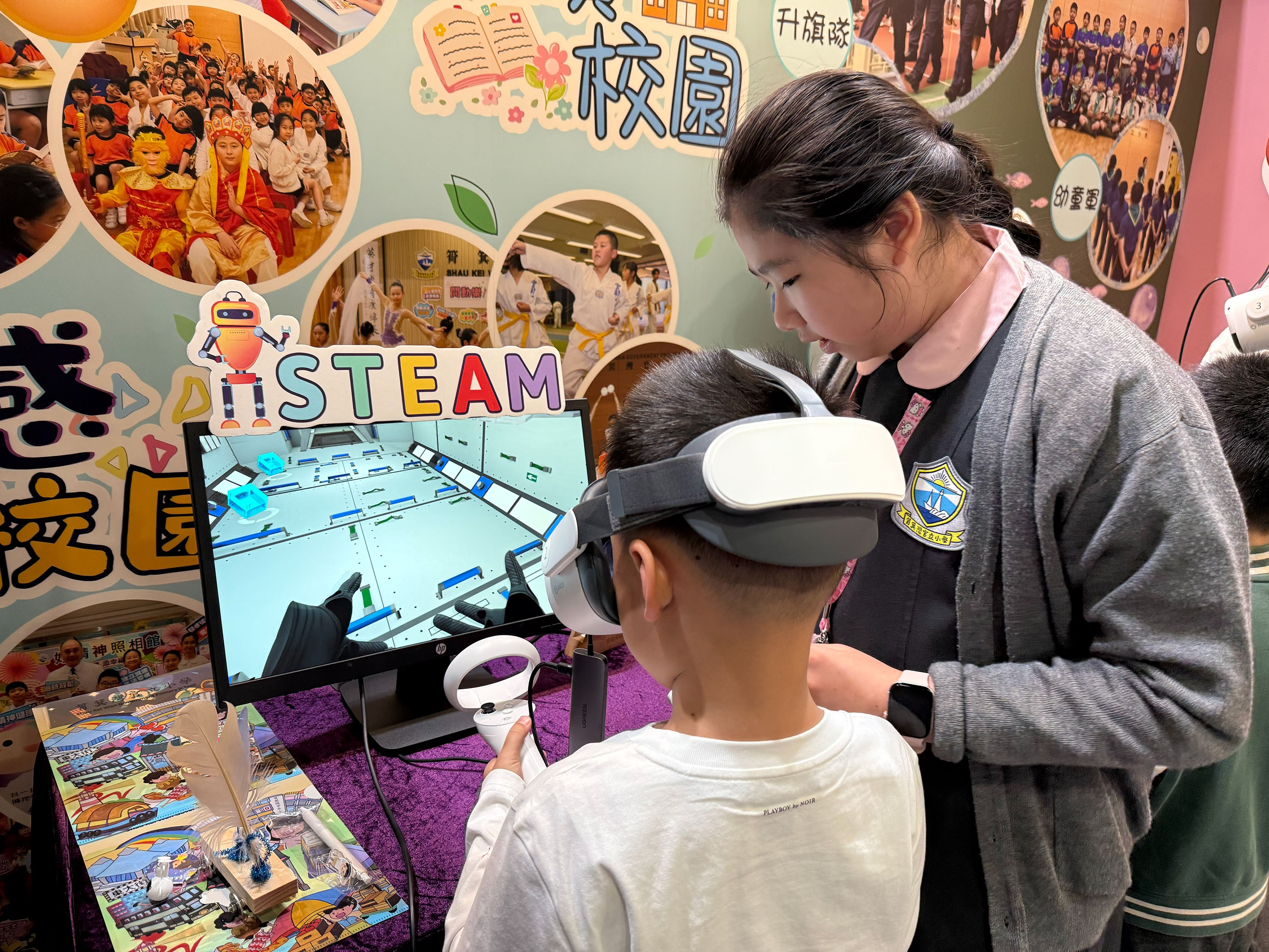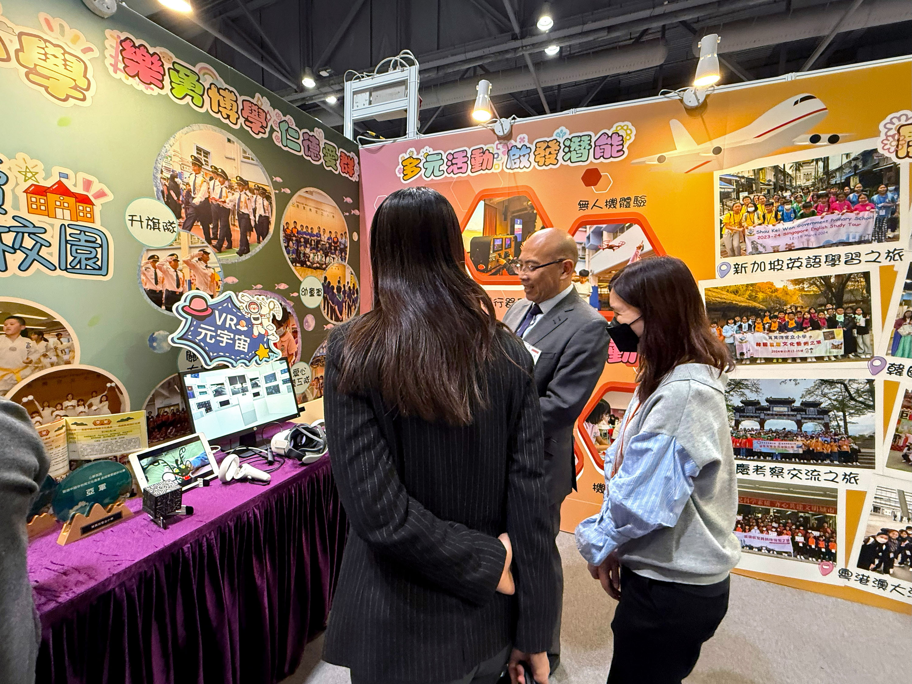 本校於2025年11月28日至11月30日參與在亞洲國際博覽館舉行的第三屆「(大灣區)香港學校教育展」。活動期間,王校長、本校師生及家長在場向內地及本地家庭介紹學校特色,並解答家長的查詢,協助他們為子女的升學作出周全的規劃。同時,本校於展位設置VR體驗區,讓學生與家長親身體驗本校在教學中應用創新科技的成果,活動深受歡迎,吸引眾多參加者踴躍參與。