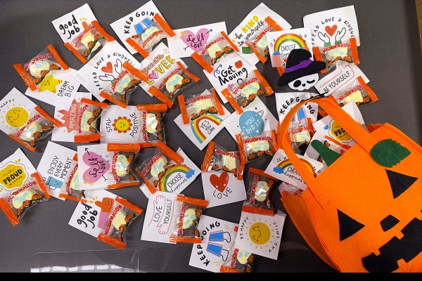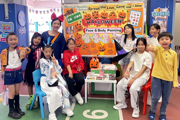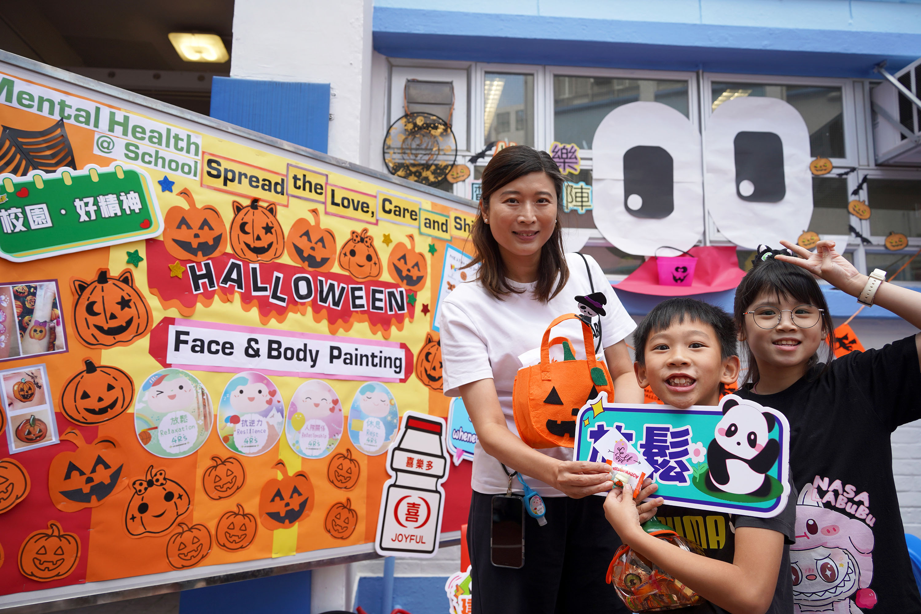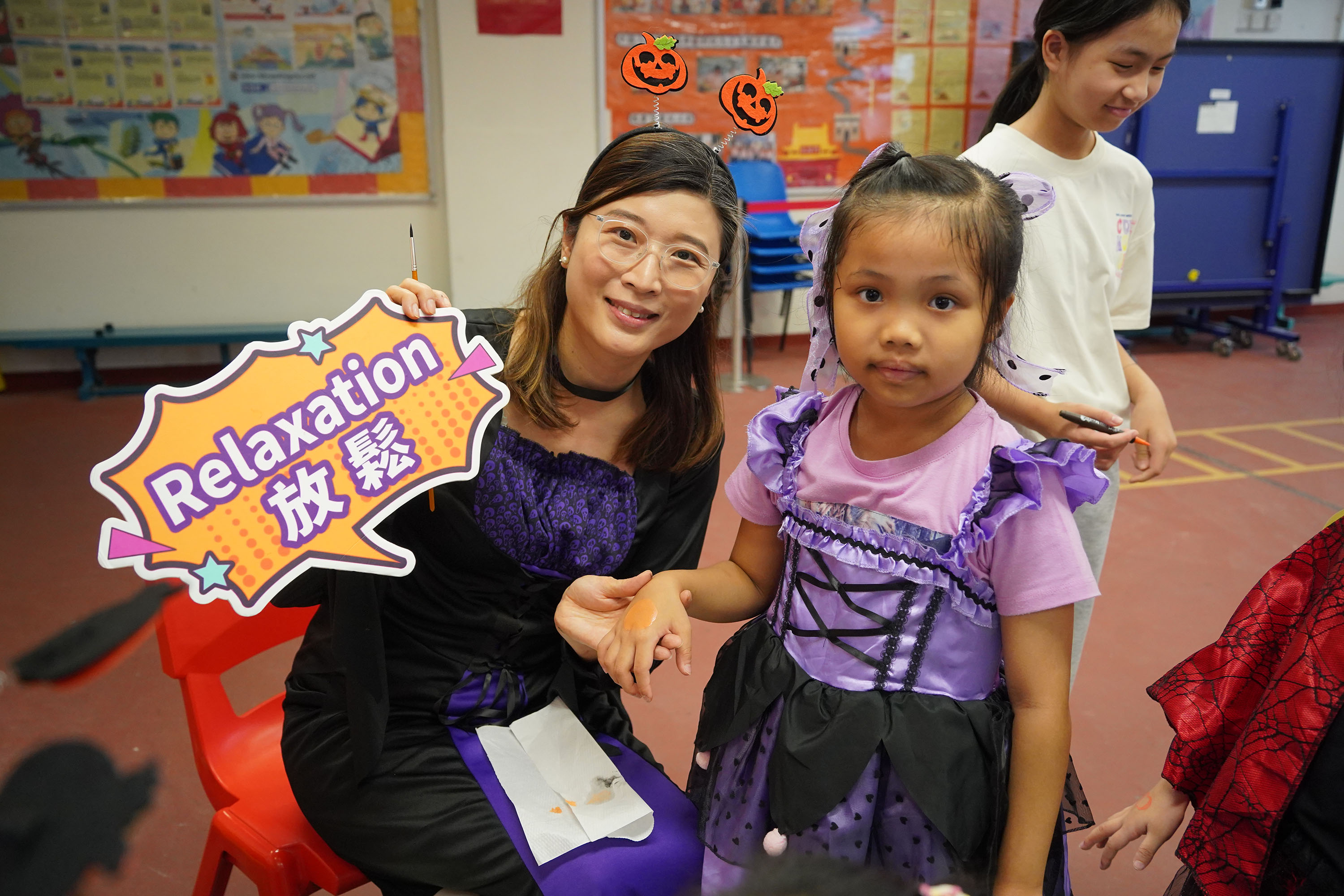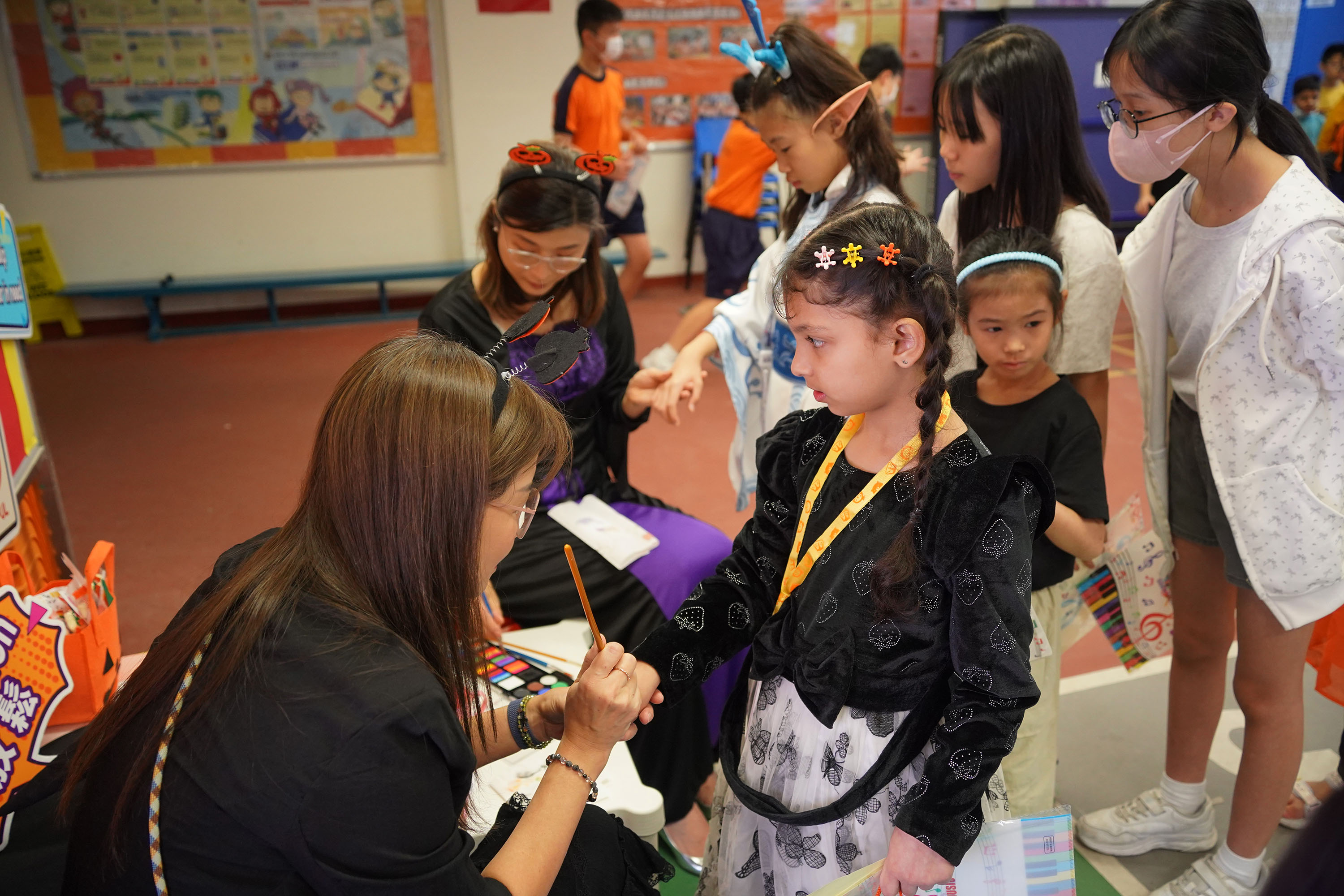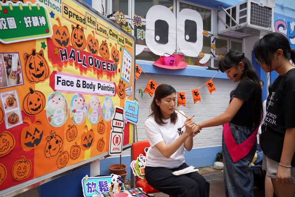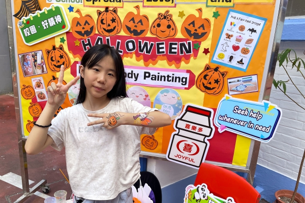 學校於2025年10月31日舉辦主題活動日──Halloween Day,學生支援組設置「好精神彩繪迎HALLOWEEN」攤位,由老師及守護大使為同學在臉部或手臂繪上應節的彩繪圖案,一同慶賀萬聖節,增添節日氣氛。「Trick or treat」是學生最喜愛的的活動,將糖果與英文正能量話語結合,為每位同學帶來甜美的鼓勵和力量。