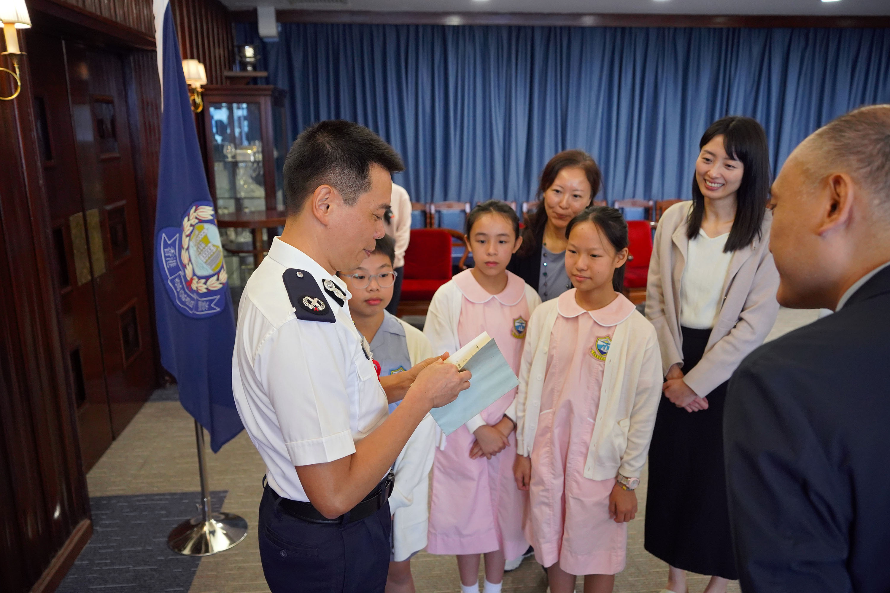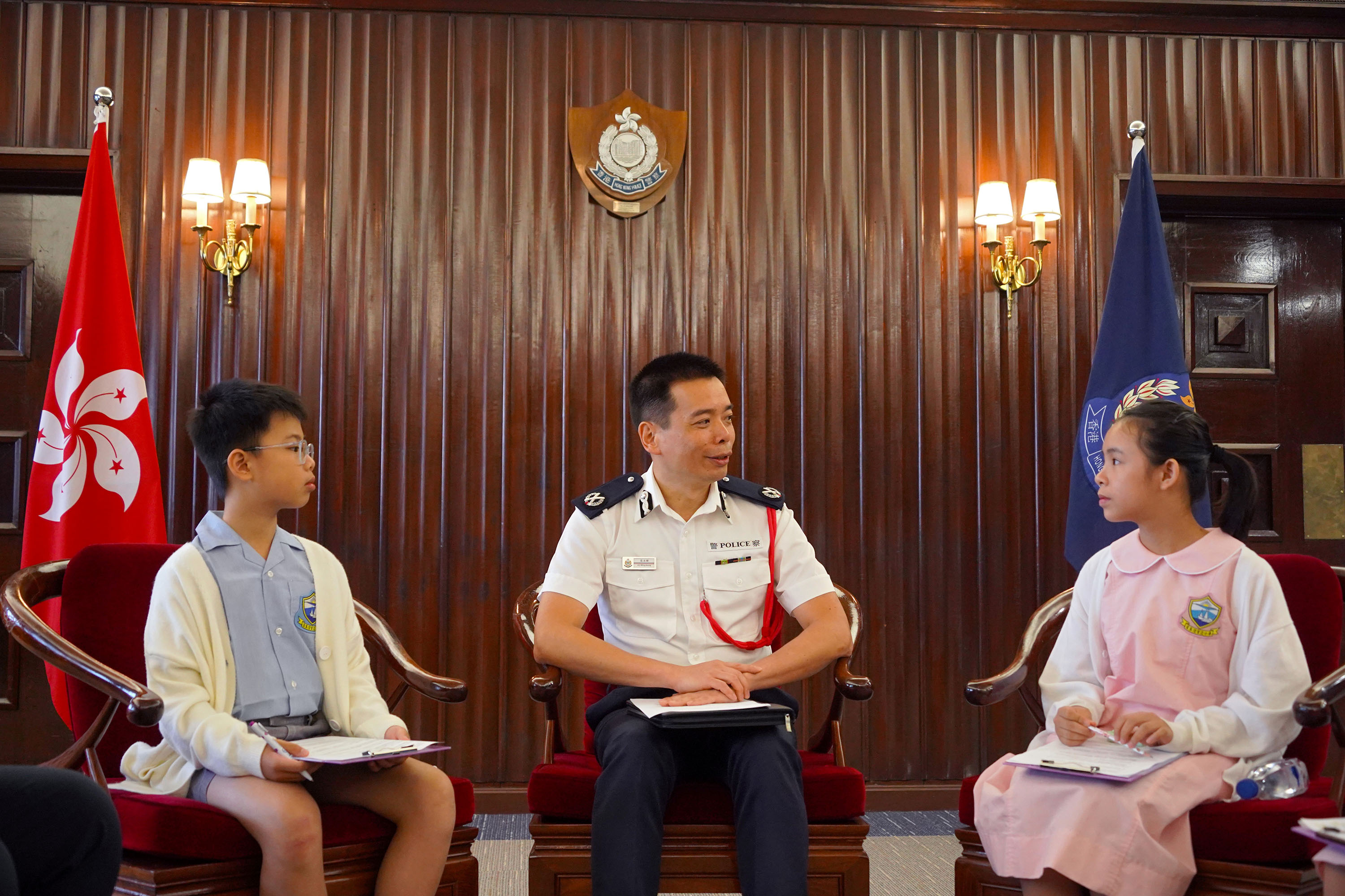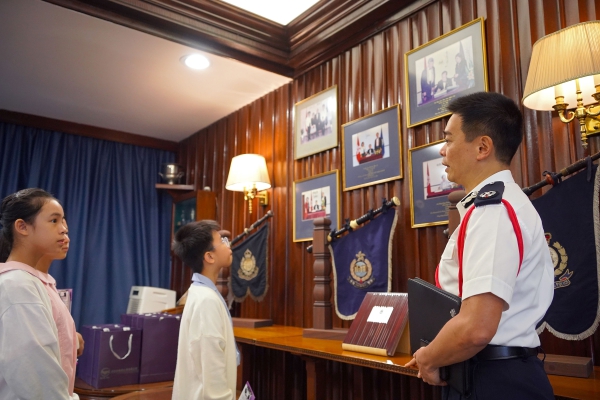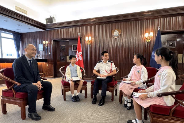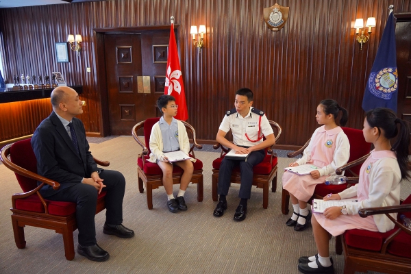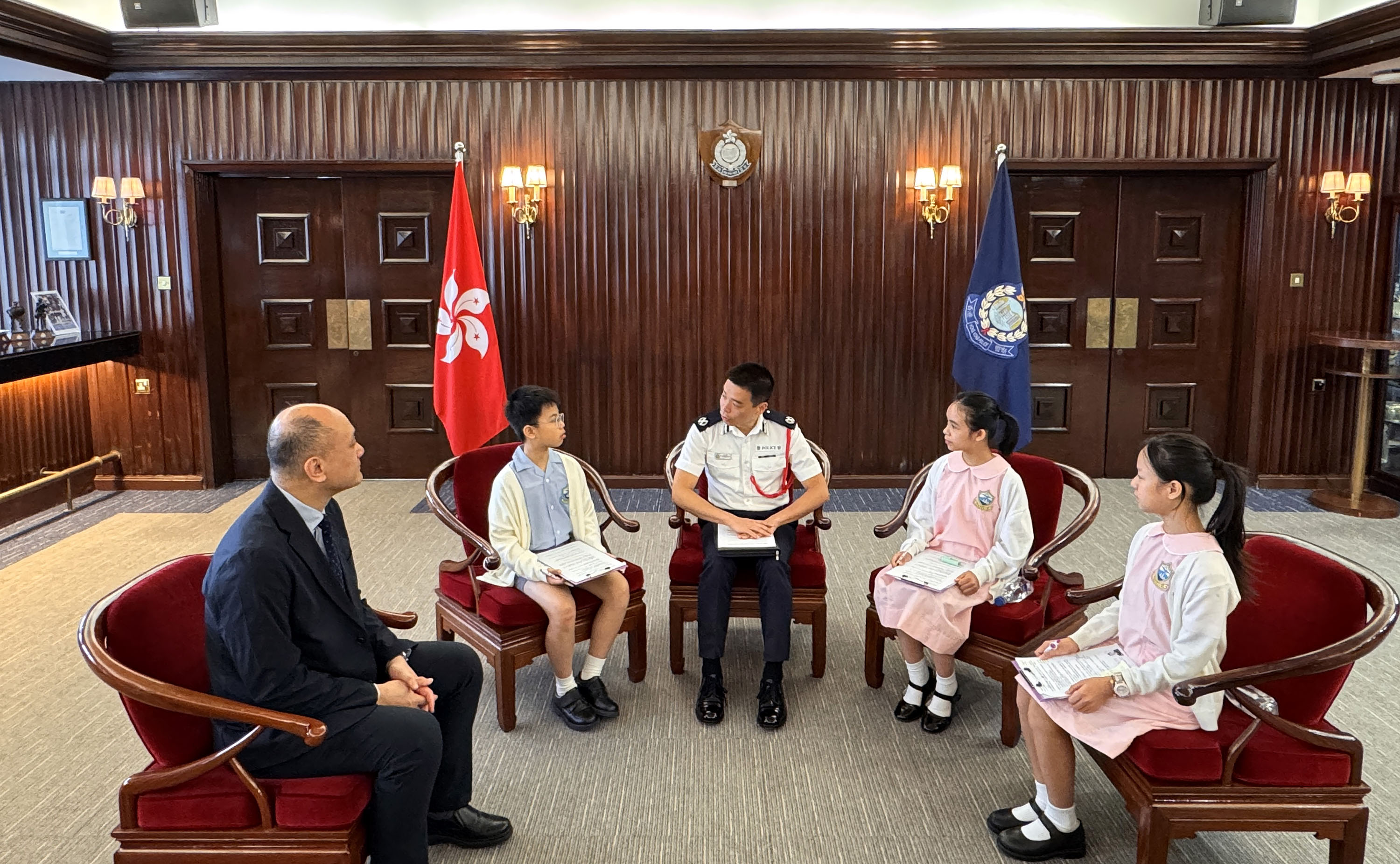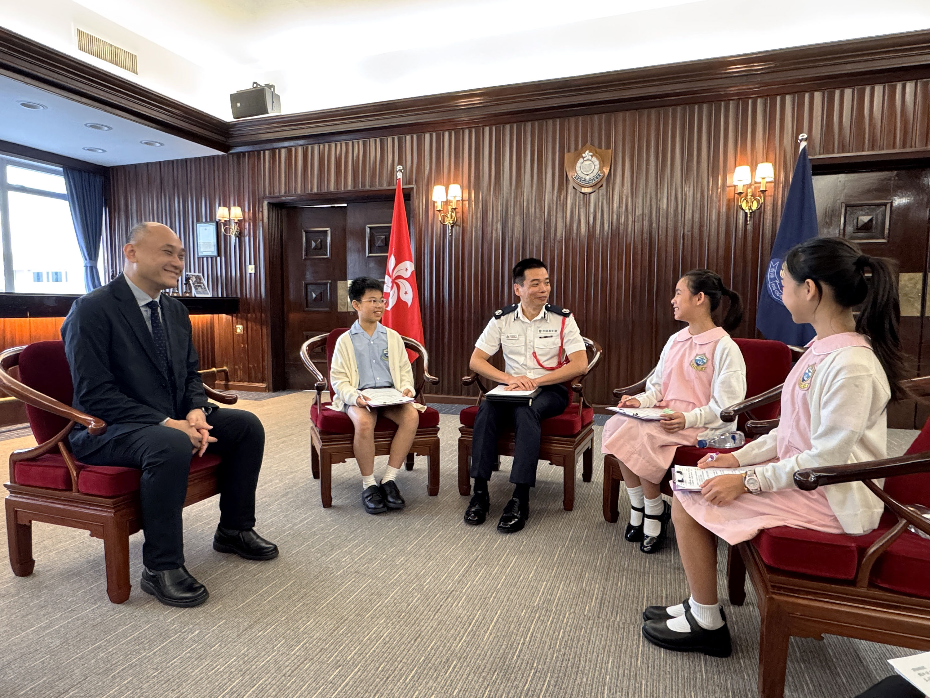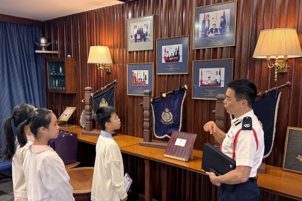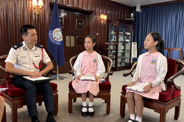 為籌備本年度第一期校訊,本校於2025年11月4日,派出五、六年級三位小記者蘇浩博、羅貝貽及余凱澄前往香港警察港島總區總部,採訪本校的傑出校友——港島總區指揮官區永樑先生。當天由校長領隊,一行七人前往位於軍器廠街的港島總區總部,在一間70年歷史的警官餐廳,與區學長傾談小學時期的生活,並請學長分享學習心得和為學弟學妹送上寄語。區學長除了接受訪問外,更帶領我們參觀及講解警官餐廳的歷史文物,讓我們大開眼界。大家若想多了解學長的小學生活,請留意本校第一期校訊的發布。現在搶先看看採訪當天的花絮吧!