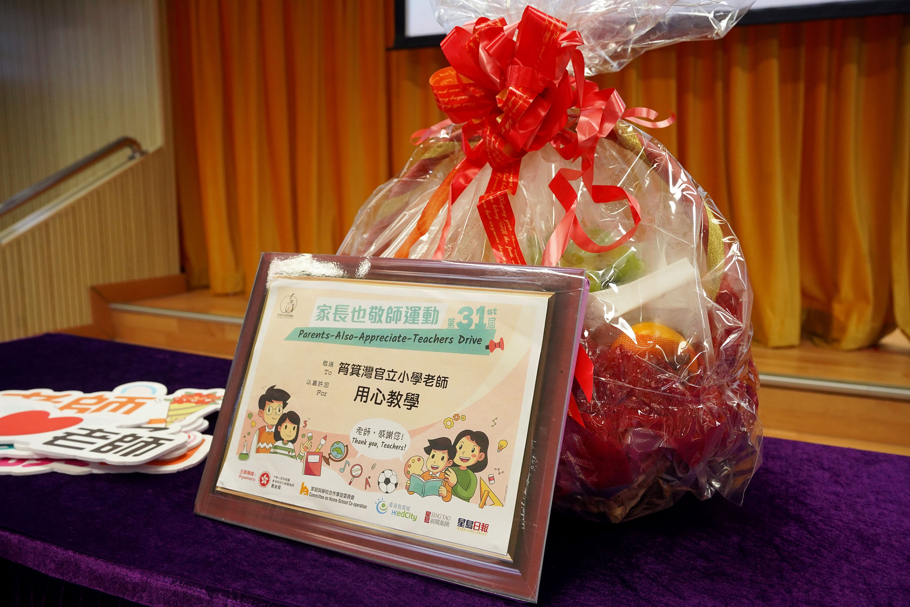 本校於2025年9月19日進行了敬師日活動。當天各班班代表向班主任獻上親手製作的心意咭,感謝老師悉心的教導。家長教師會代表及校友會代表亦專誠到校送贈果籃,答謝老師對學生的指導及關愛。校友會代表更講述就讀時的學習生活,分享尊師重道的訊息。