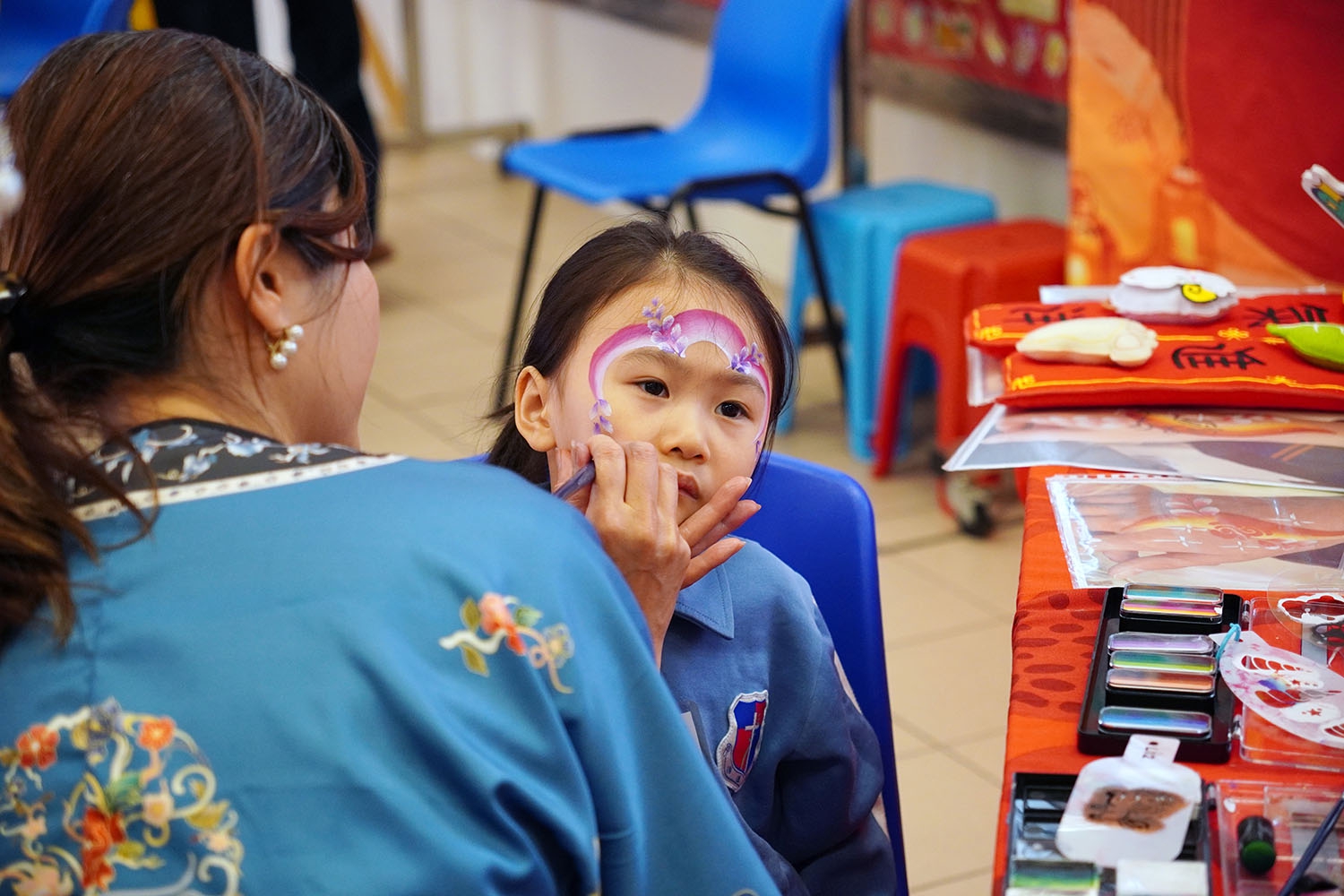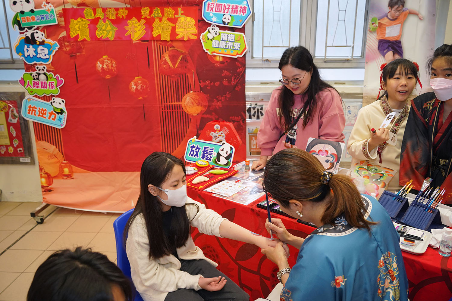 本校於2026年2月6日舉辦主題活動日──「中華文化日」,學生支援組設置了「『龍馬精神‧笑在臉上』繽紛彩繪樂」攤位,以面部彩繪的形式進行活動。由老師及學生守護大使親自為同學在臉部及手背上繪製各種富有特色的中式圖案,讓學生透過色彩與圖案表達情感,體驗創作帶來的心靈放鬆與正能量,為校園增添節日的歡樂氣氛。