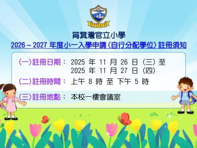 2026 ~ 2027 年度小一入學申請 (自行分配學位) 註冊須知