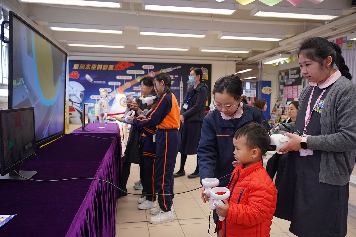 本校於2023年9月23日(星期六)為小一舉行「STEAM創科體驗課」,學生除了參與機械人編程課外,他們亦進行了虛擬實境(VR)體驗及科學小實驗,以啟發學生的創新思維。當天,本校也邀請了區內幼稚園學生及家長參與,一起體驗新科技,感受校內STEAM課堂的愉快學習氣氛。