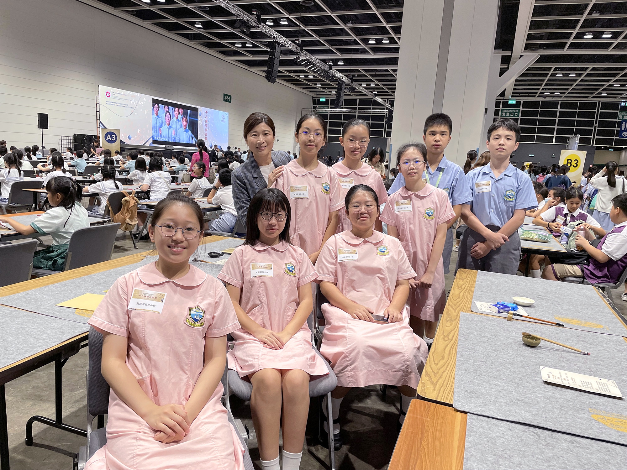 本校8位學生代表於9月14日參加由教育局於會議展覽中心舉辦的「千人揮毫賀國慶」活動,與本港其他中、小學生代表在舉國歡慶中華人民共和國成立75周年之際,以中華優秀傳統文化為根基,用書法藝術為呈現方式,一起即席揮毫,展現了大家對書法藝術的深切熱愛,更表達了大家對偉大祖國的美好祝福,為祖國繁榮進步而竭盡全力,同賀國家昌盛繁榮。