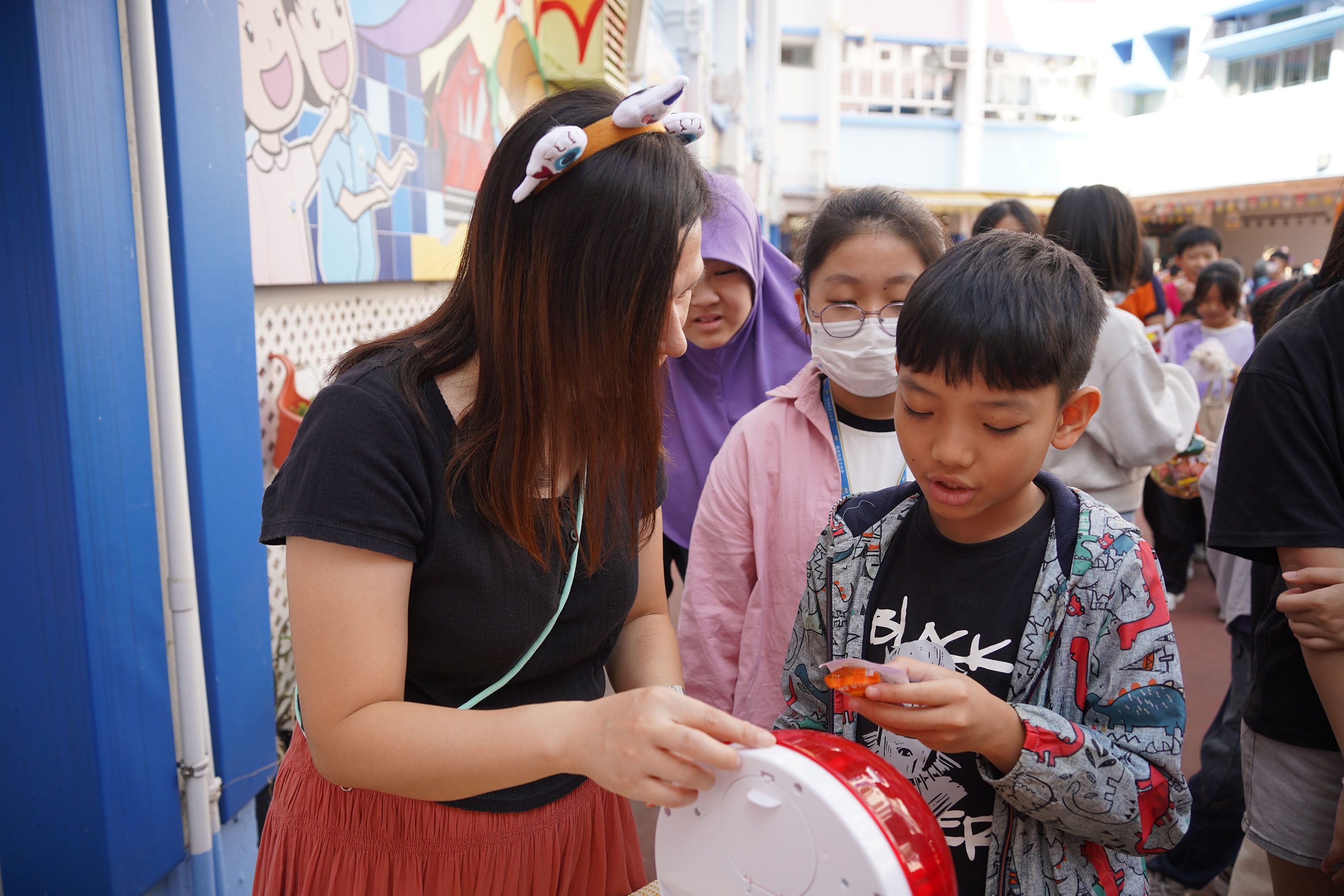 於2025年10月31日,學校社工與「關懷大使」在全日小息時段舉行「快樂魔法陣」攤位活動,為配合年度訓輔主題「尊重及堅毅」,讓全校學生有機會發揮創意,尋找屬於自己創造快樂經驗的方法,並知道每個人都有專屬的「快樂魔法」,從中學會尊重各人的不同。另外,學校社工亦向學生說明了日常生活難免會遇到困難或挑戰,但我們可學習用正向的心態面對,在練習使用自己的「快樂魔法」時,逐漸為內心增添堅毅的特質,使日後遇上逆境時,可更有力量面對。當日學生踴躍參與活動,現場氣氛一片歡樂。