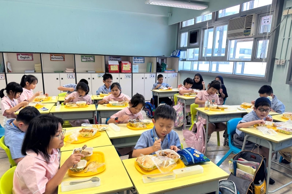 全校學生在校午膳已順利地展開,學生們養成了午膳的常規,由午膳服務生安排派飯。學生們除了從小學習珍惜食物,自行清潔飯後的桌子,有規矩地交還飯盒,更會自備環保餐具,為「走塑」的計劃出一分力。在開學首月,特別感謝多名家長義工熱心地每天回校協助一至三年級的學生派飯,令學生學會自律地吃飯,及享受在校與同學一同吃飯的樂趣。