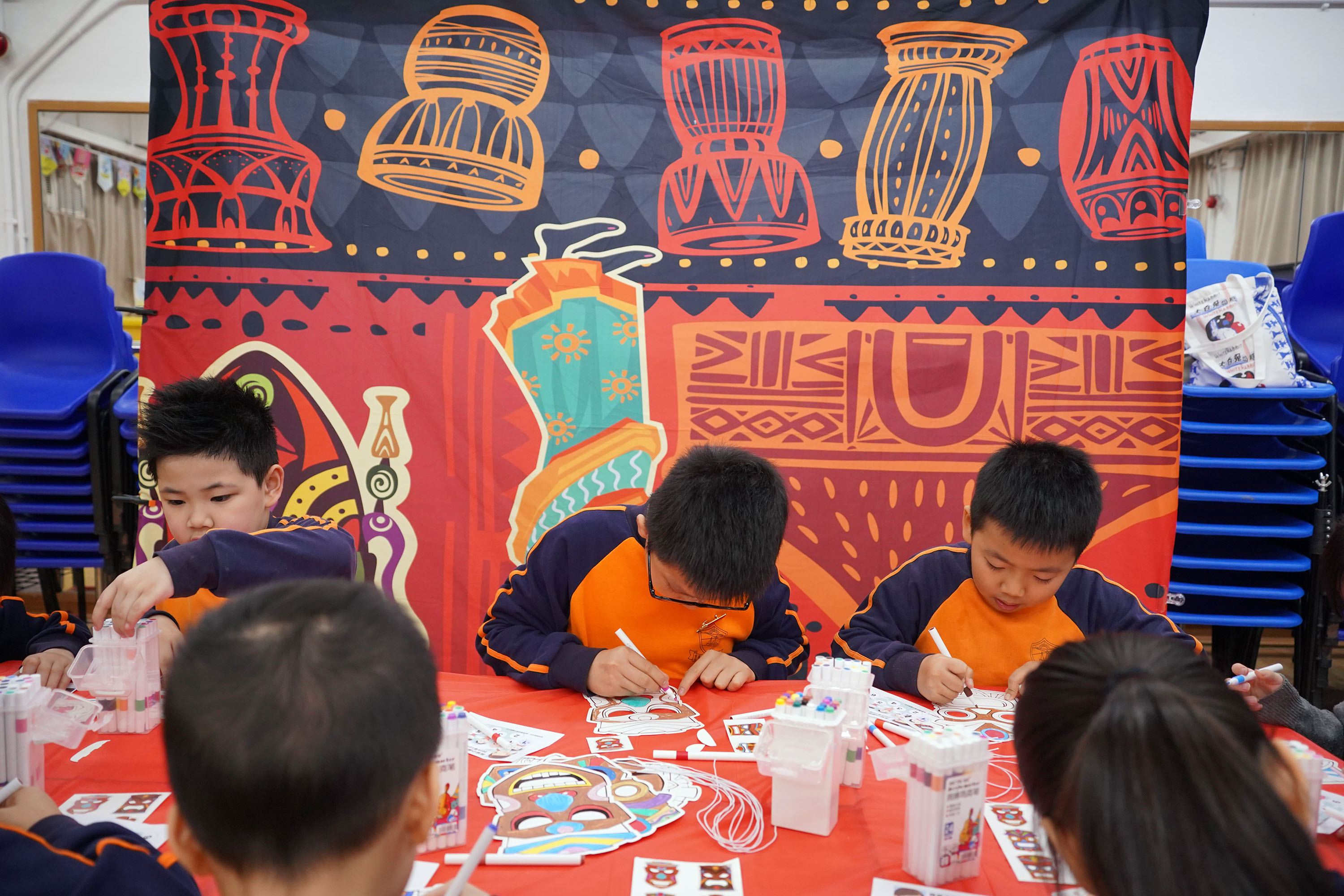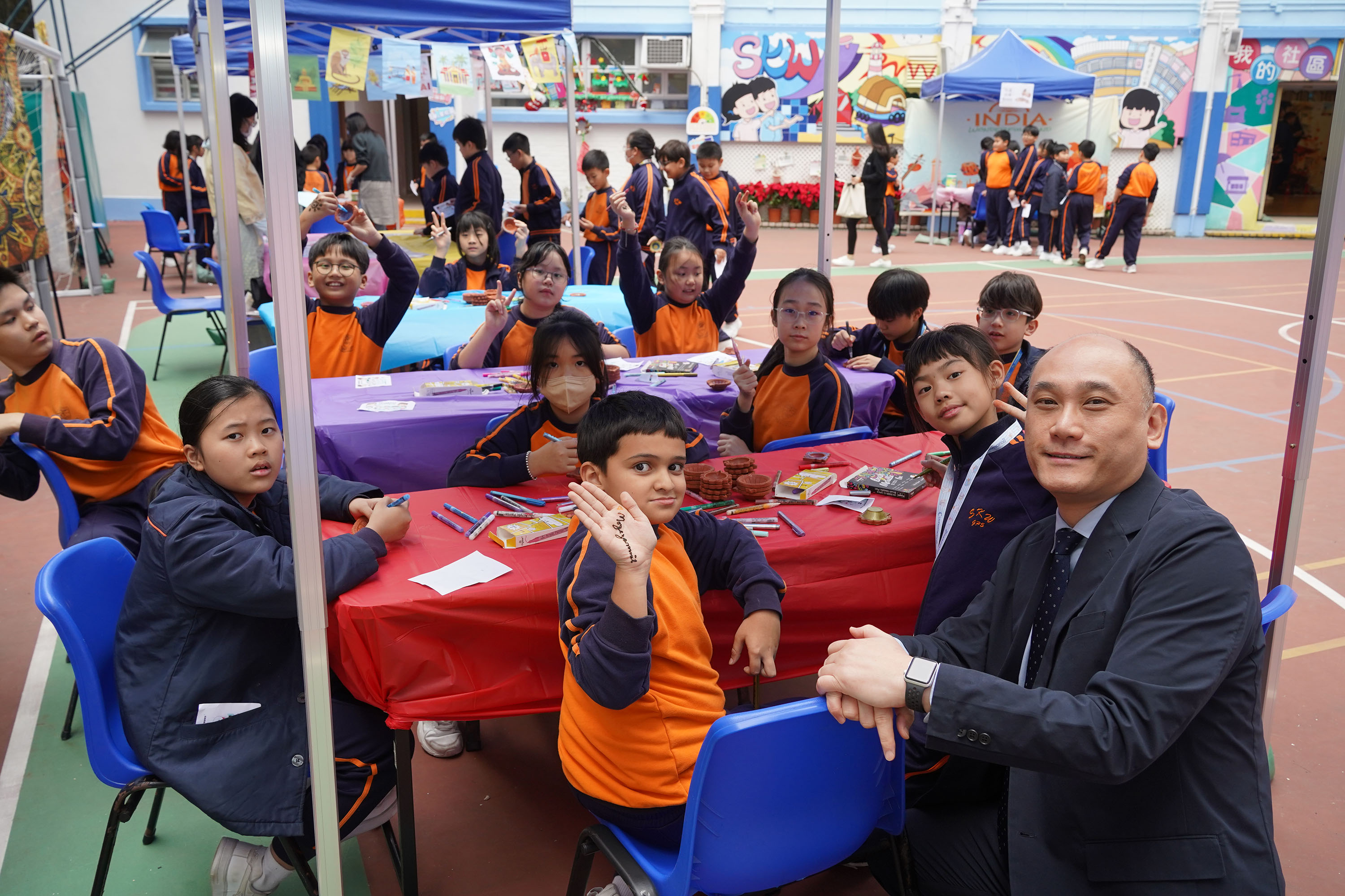 活動分設活動室及操場兩個區域,設計了豐富的互動攤位。在活動室中,學生可體驗「漂漆書籤」、「泰國食物火車」、「Henna彩繪」、「多國服飾試穿」(包括華服、巴基斯坦服、和服及韓服)、「木射」及「土著面具」製作;操場則安排了「滾鐡環」和「印度陶土燈」等攤位。這些內容融合了中國及不同國家的文化元素,讓學生透過手作、遊戲及藝術,親身感受文化多樣性。