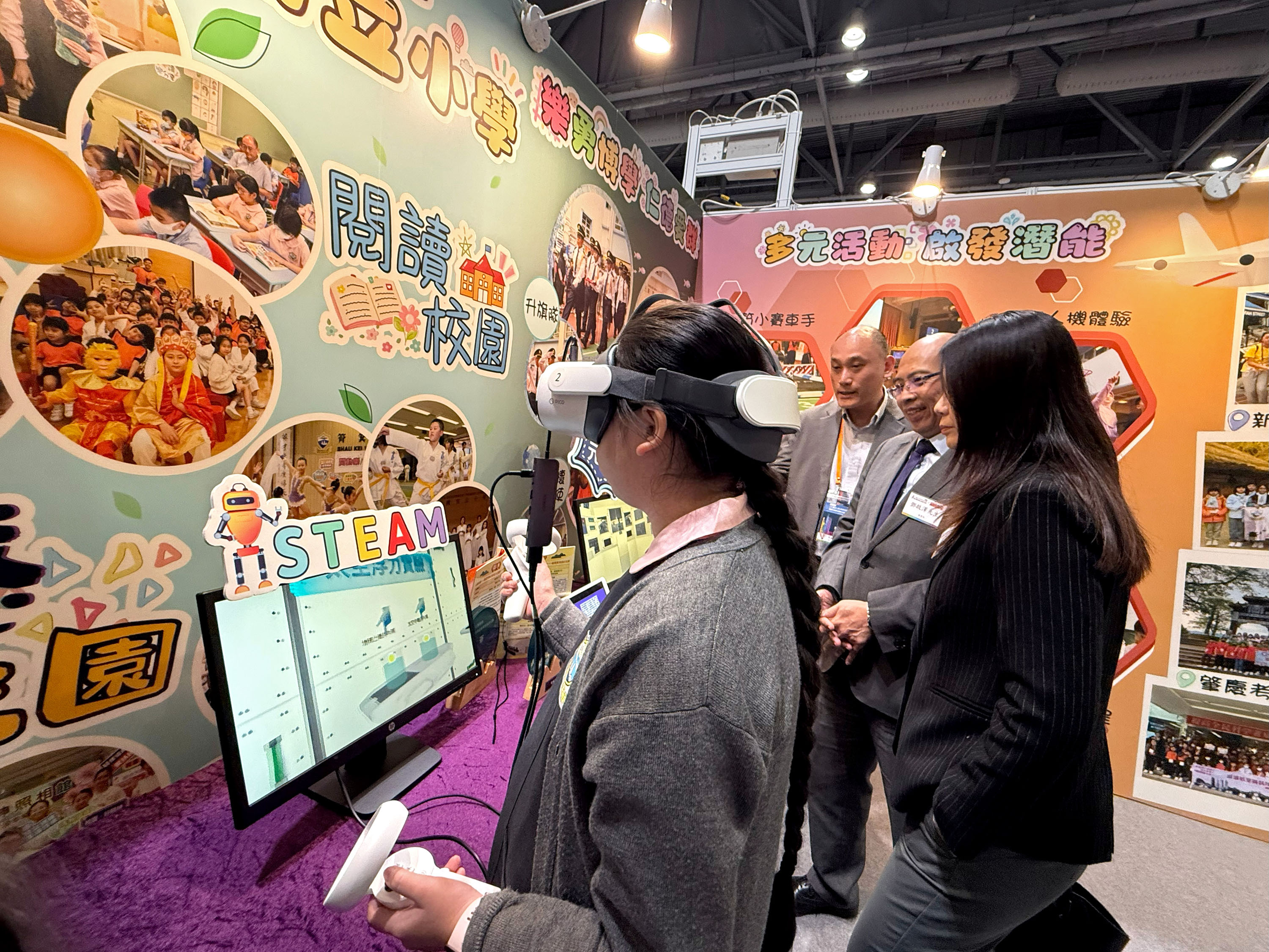 本校於2025年11月28日至11月30日參與在亞洲國際博覽館舉行的第三屆「(大灣區)香港學校教育展」。活動期間,王校長、本校師生及家長在場向內地及本地家庭介紹學校特色,並解答家長的查詢,協助他們為子女的升學作出周全的規劃。同時,本校於展位設置VR體驗區,讓學生與家長親身體驗本校在教學中應用創新科技的成果,活動深受歡迎,吸引眾多參加者踴躍參與。