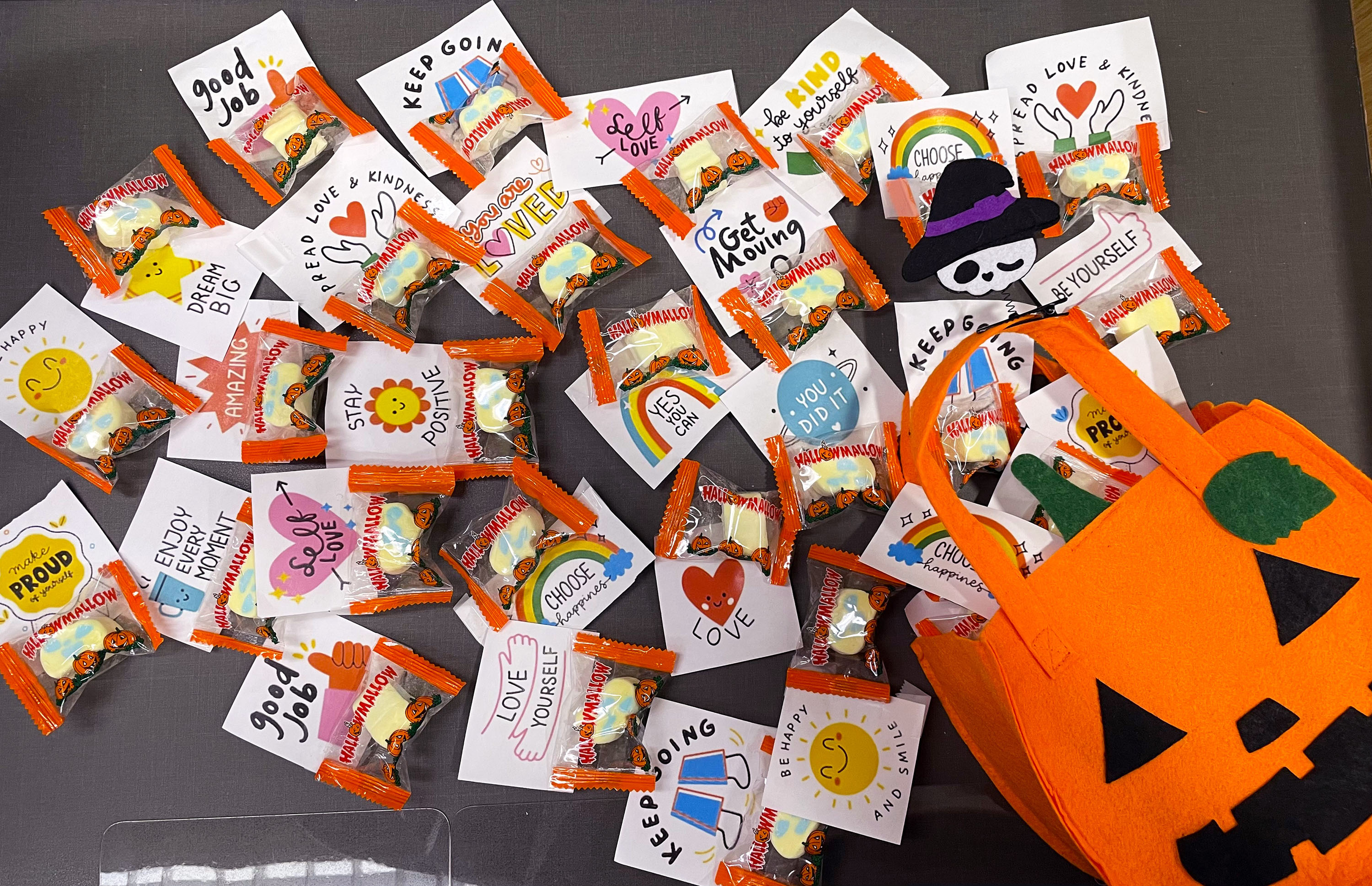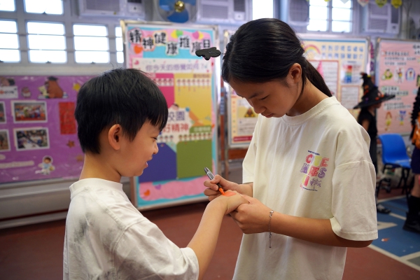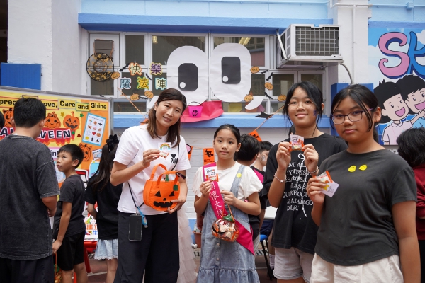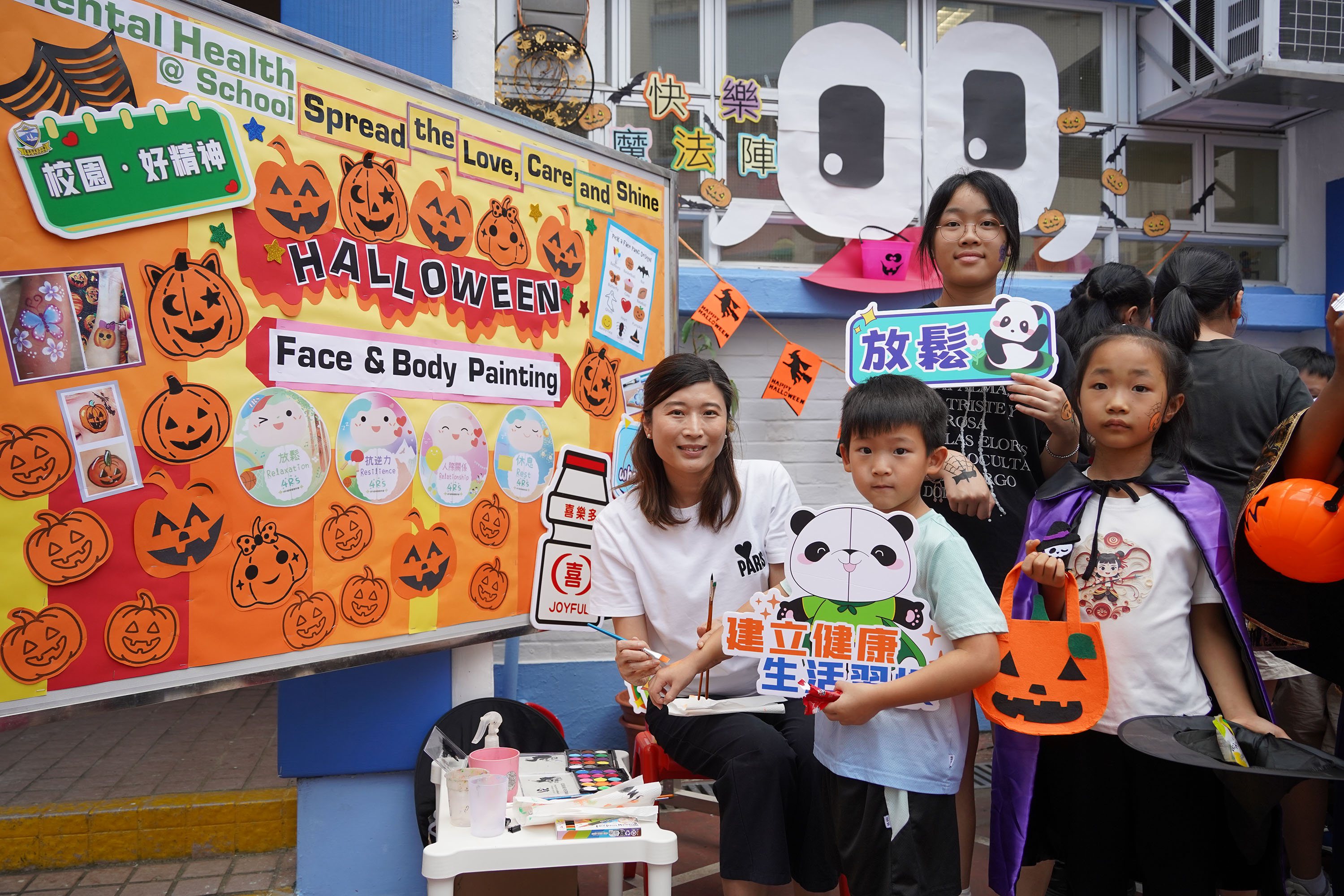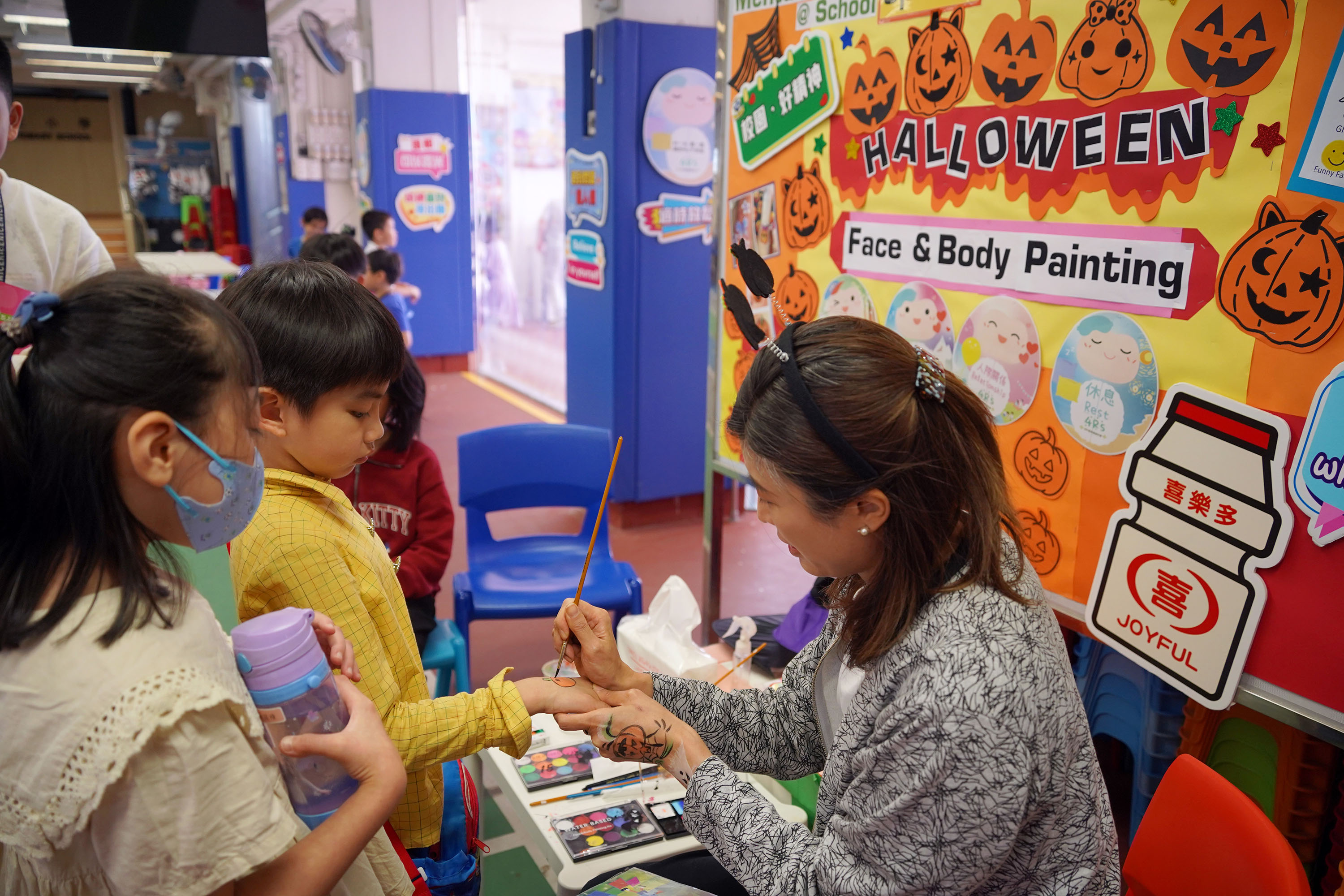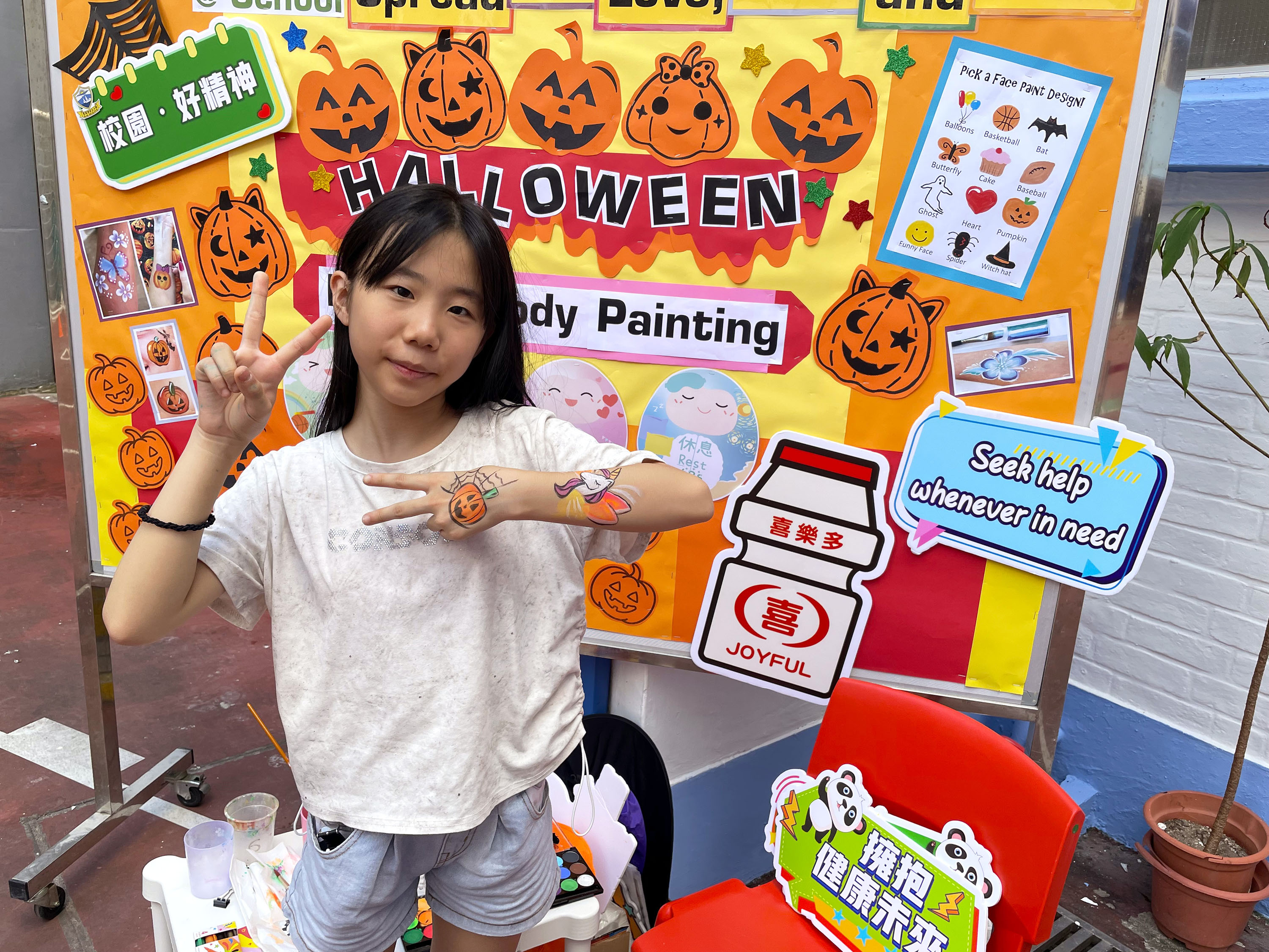 學校於2025年10月31日舉辦主題活動日──Halloween Day,學生支援組設置「好精神彩繪迎HALLOWEEN」攤位,由老師及守護大使為同學在臉部或手臂繪上應節的彩繪圖案,一同慶賀萬聖節,增添節日氣氛。「Trick or treat」是學生最喜愛的的活動,將糖果與英文正能量話語結合,為每位同學帶來甜美的鼓勵和力量。
