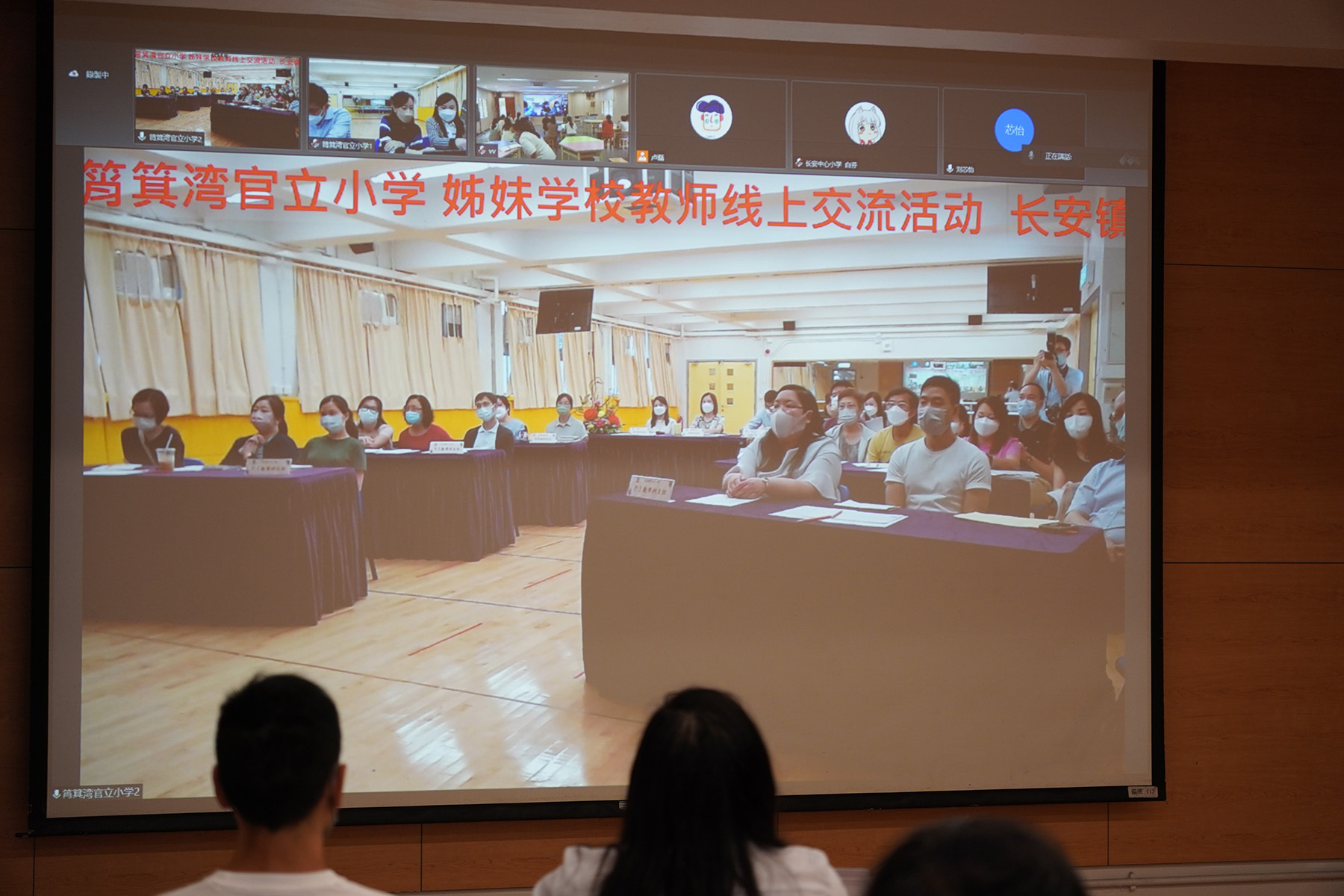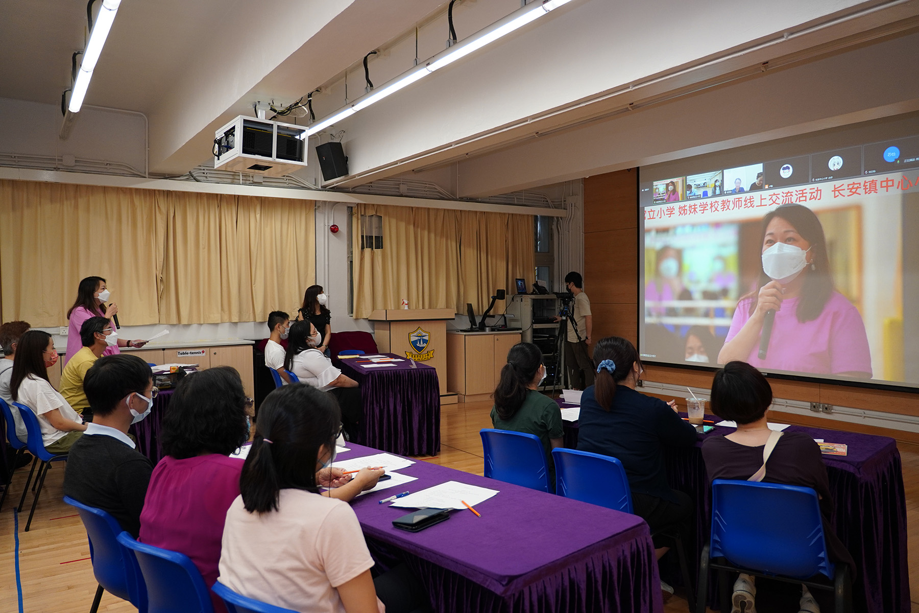 本校自2017年與內地不同地區的姊妹學校進行締結,期望透過姊妹學校計劃,讓教師及學生對內地的教育及文化有進一步的認識。雖然疫情令我們不能進行互訪,但在科技的幫助下,我們在6月17日與東莞市長安鎮中心小學的數學團隊進行線上交流,透過分享不同的教學策略及校本計劃,不但能促進兩地教師的專業成長,發展優質教育,更加深兩校教師間的情誼。同時,我們更邀請了教育大學張僑平博士為我們的分享進行點評,令我們獲益良多。在交流會完結時,我們還相約來年再携手一起進行教研呢!