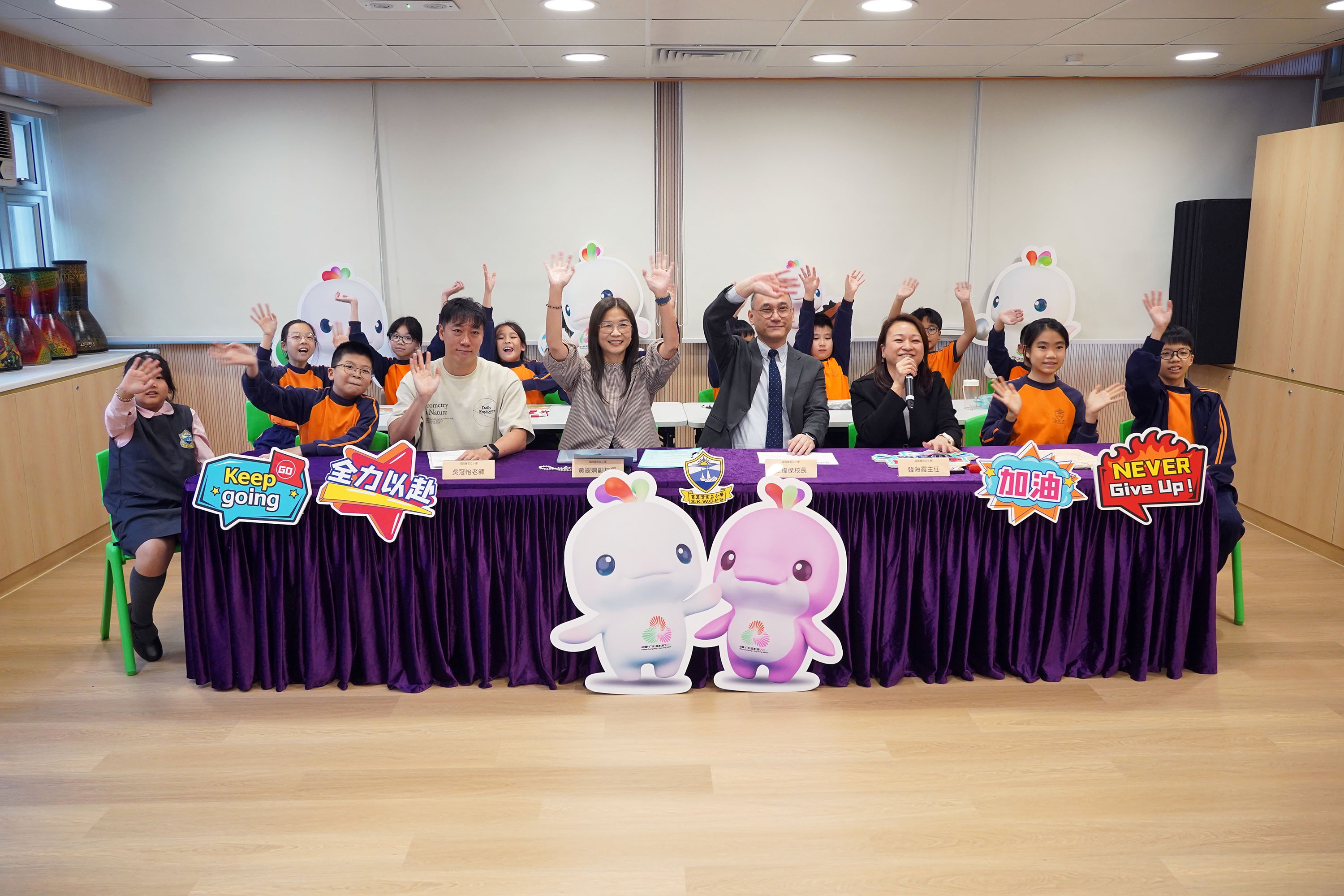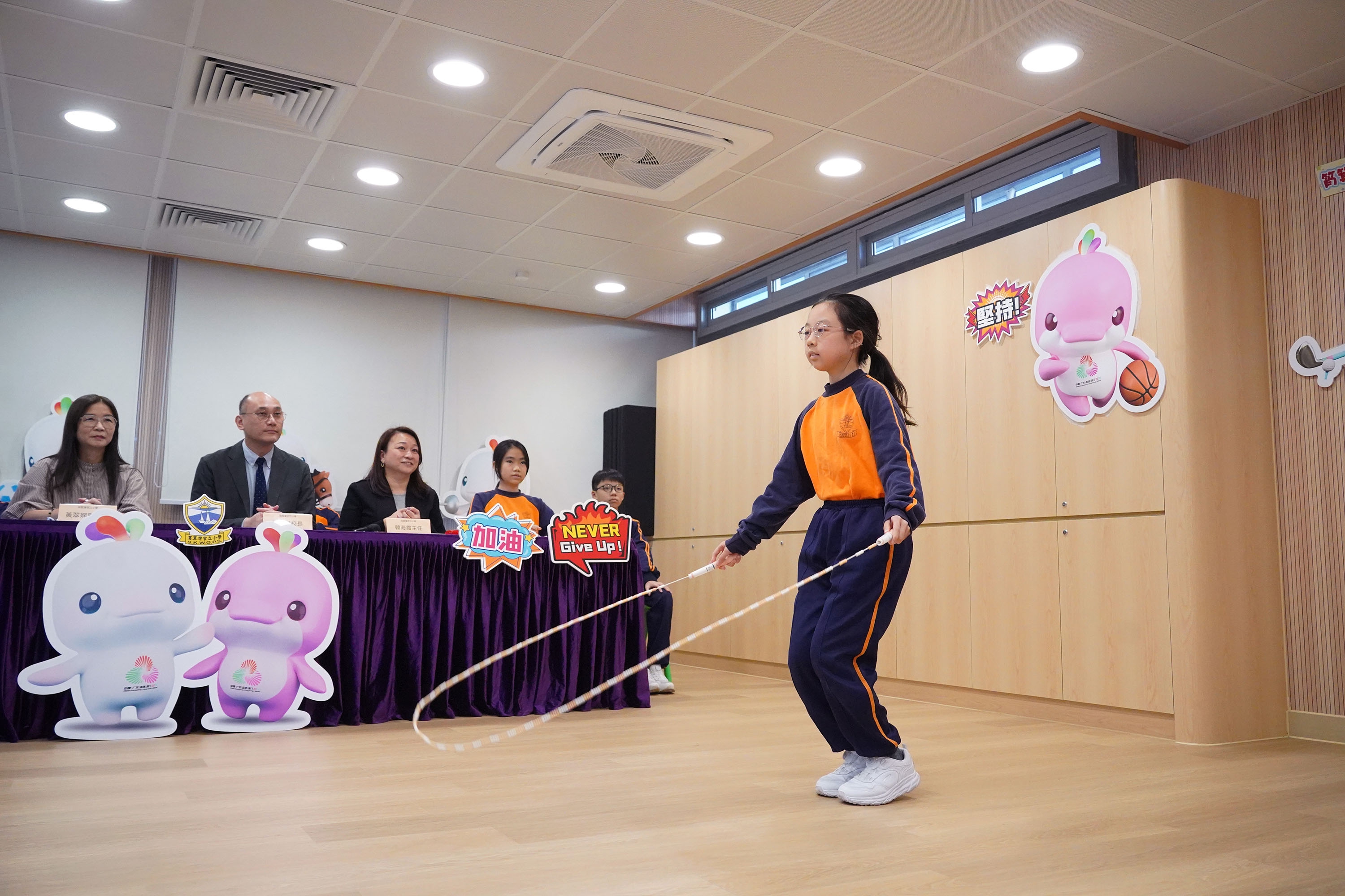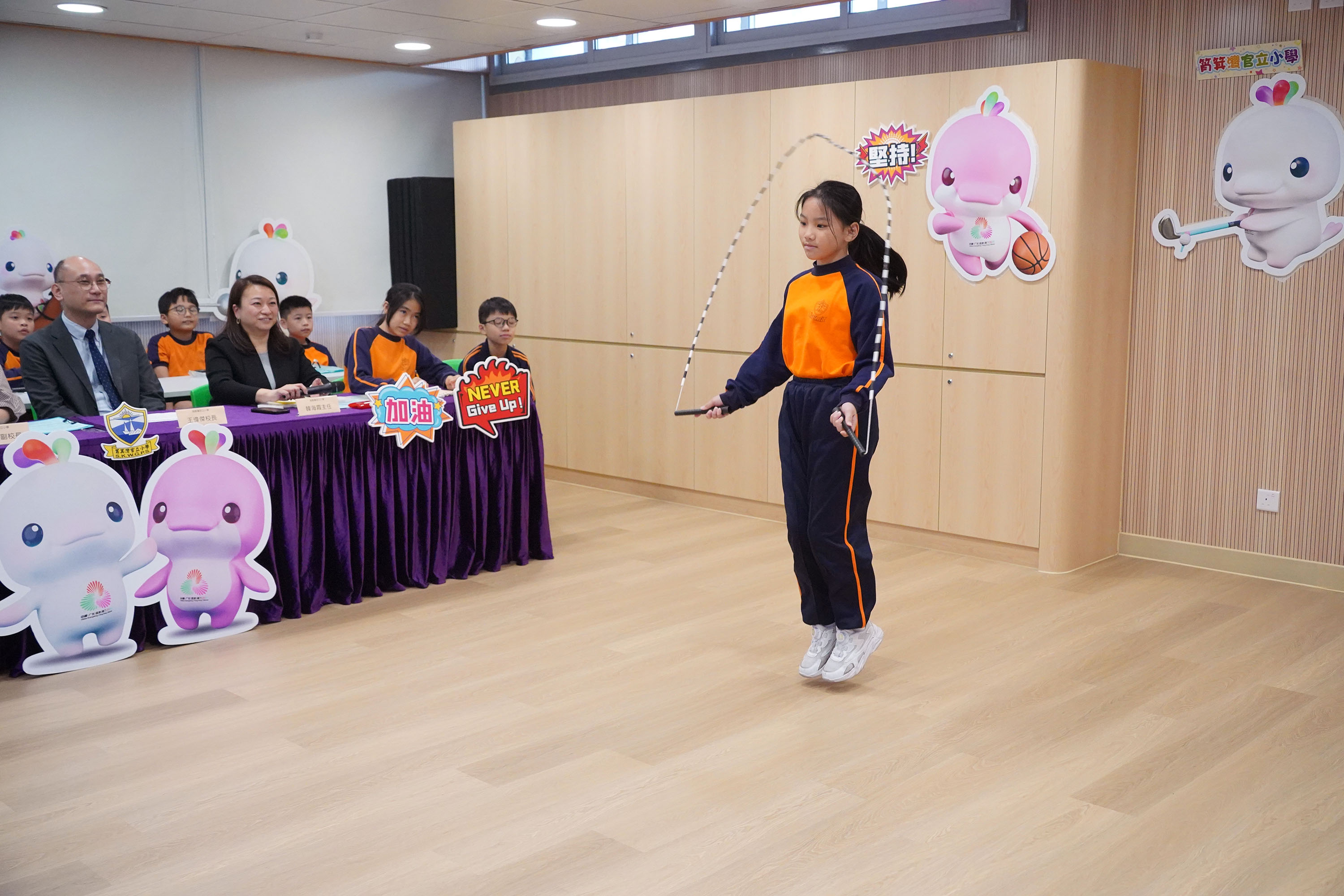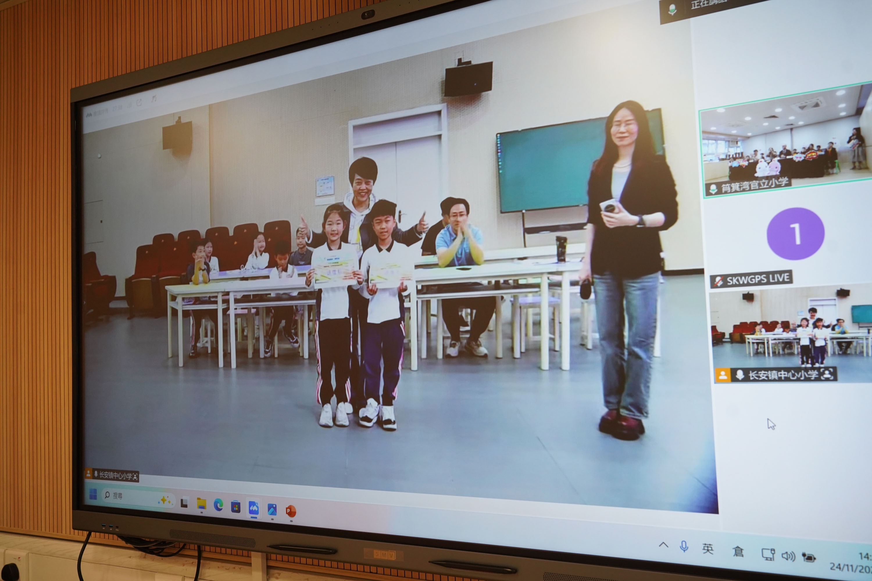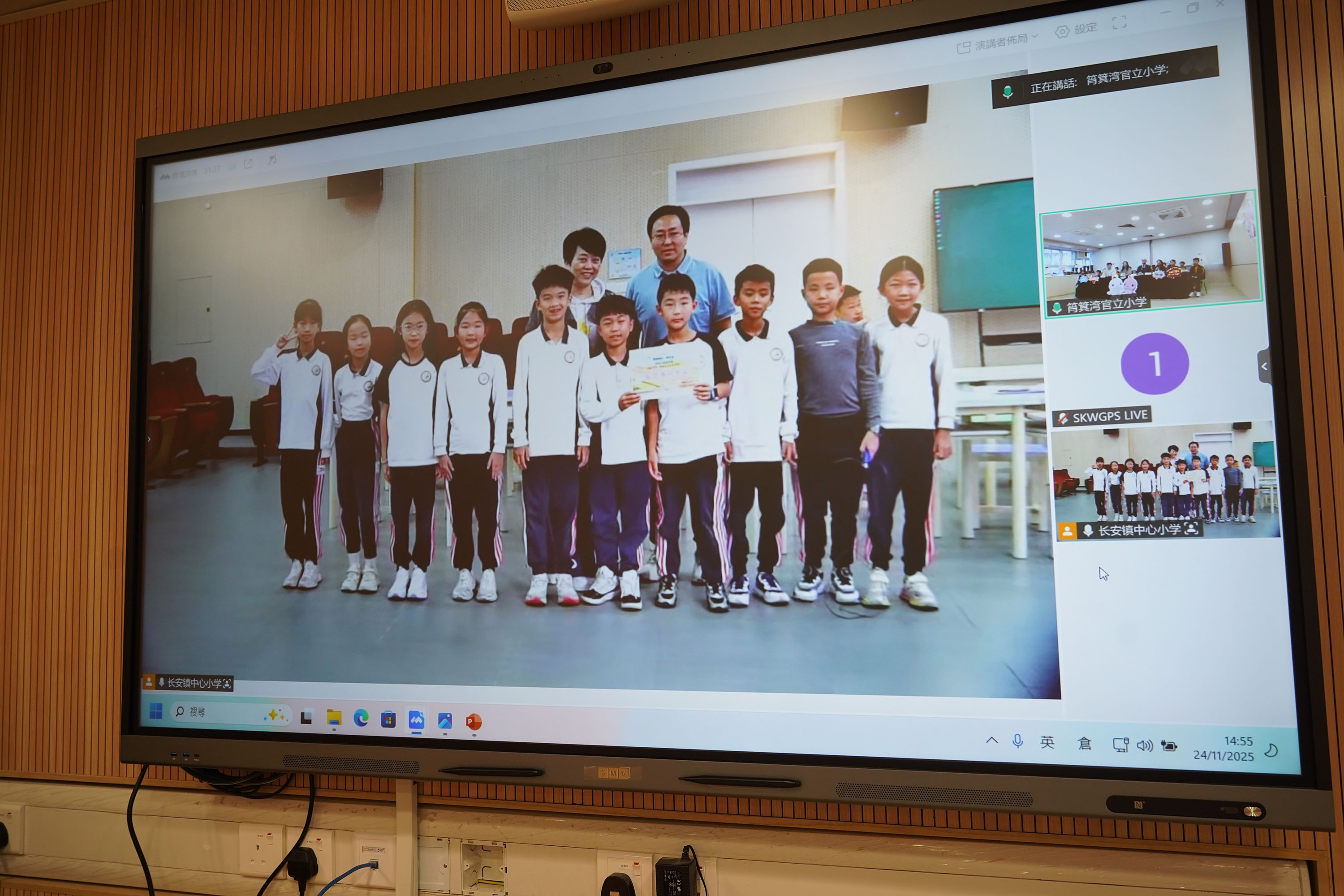 本校與姊妹學校東莞市長安鎮中心小學於2025年11月24日(星期一)在全新裝修的音樂室進行姊妹學校線上交流及跳繩友誼賽。當日,成功舉辦了兩地同步直播活動。作為主辦方,本校搭建了交流平台,讓兩校師生共同觀看雙方代表分享的內容。活動中,雙方圍繞「第十五屆全國運動會」(十五運會)的推廣特色展開交流,並分享了各自在體育運動方面的推廣活動與經驗。