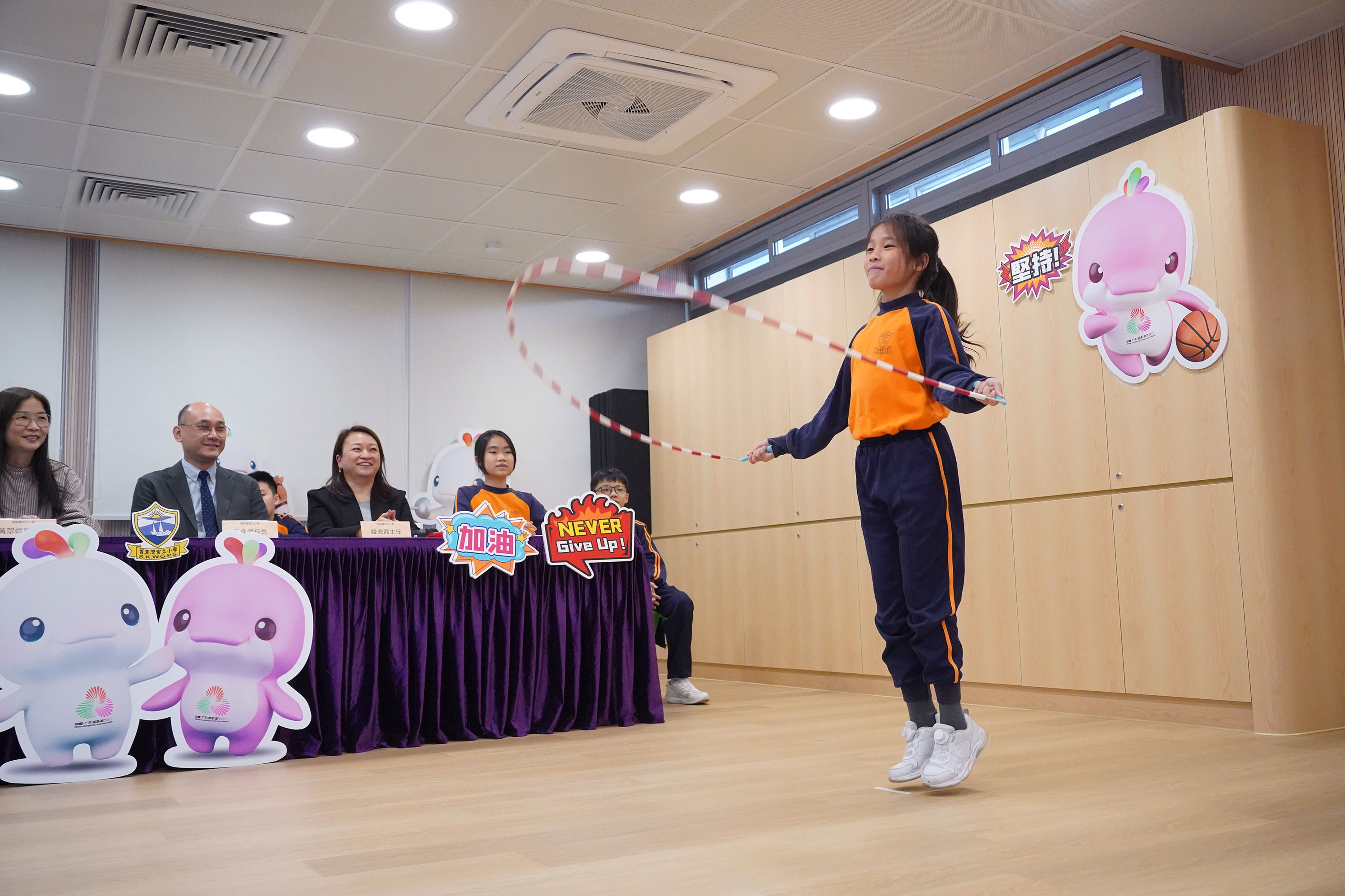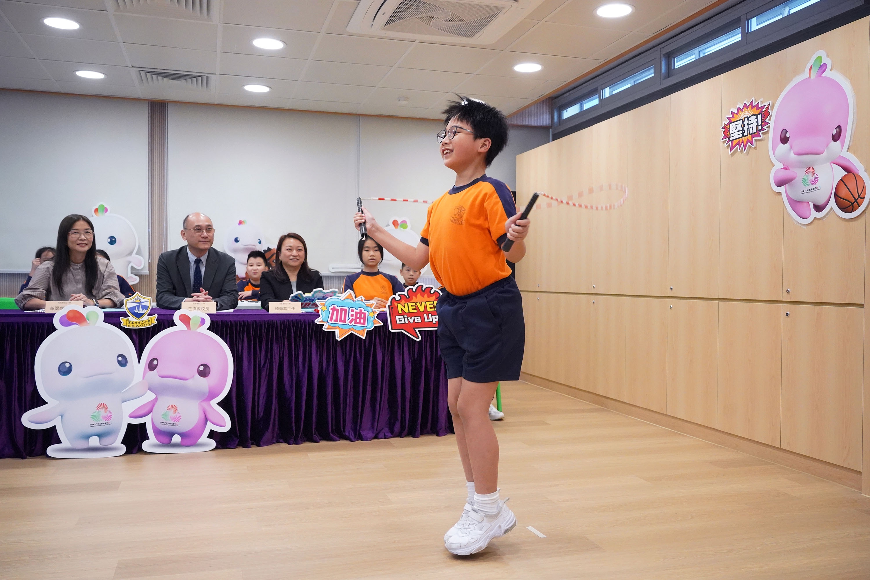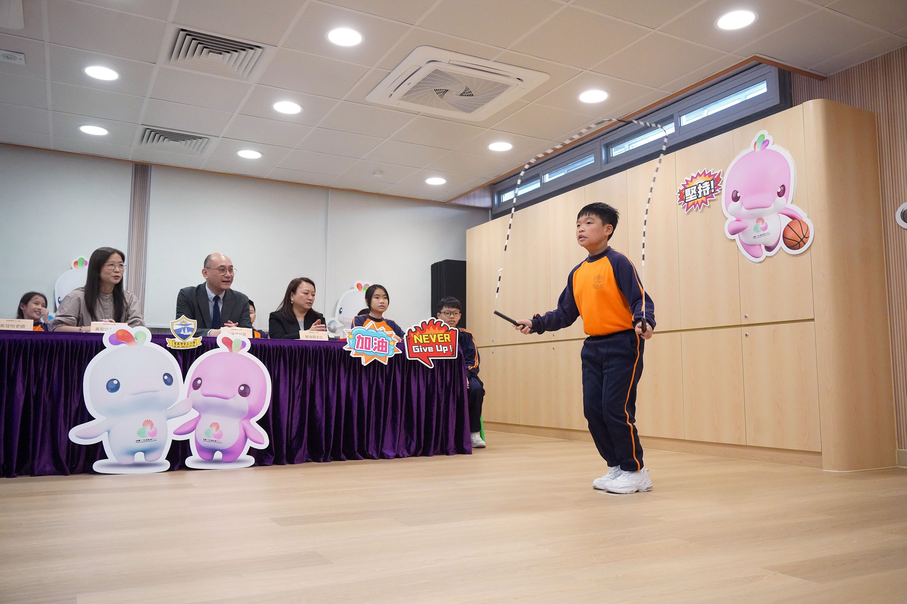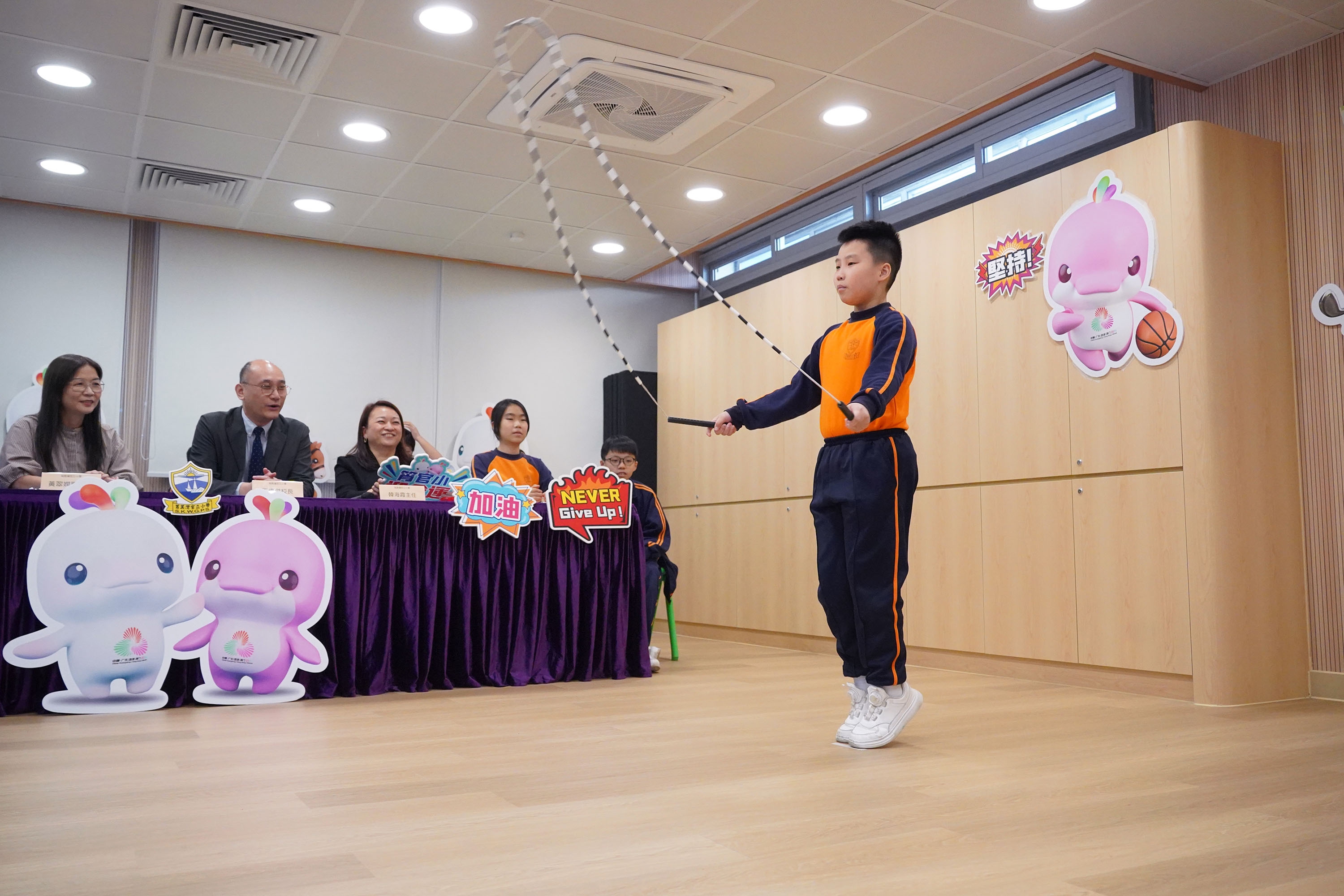 最後,迎來了學生們最期待的環節—「兩地線上跳繩友誼賽」。參賽學生們全力以赴,展現了出色的運動精神;而觀賽的同學們也情緒高漲,為選手們熱情加油,現場氣氛熱烈融洽。