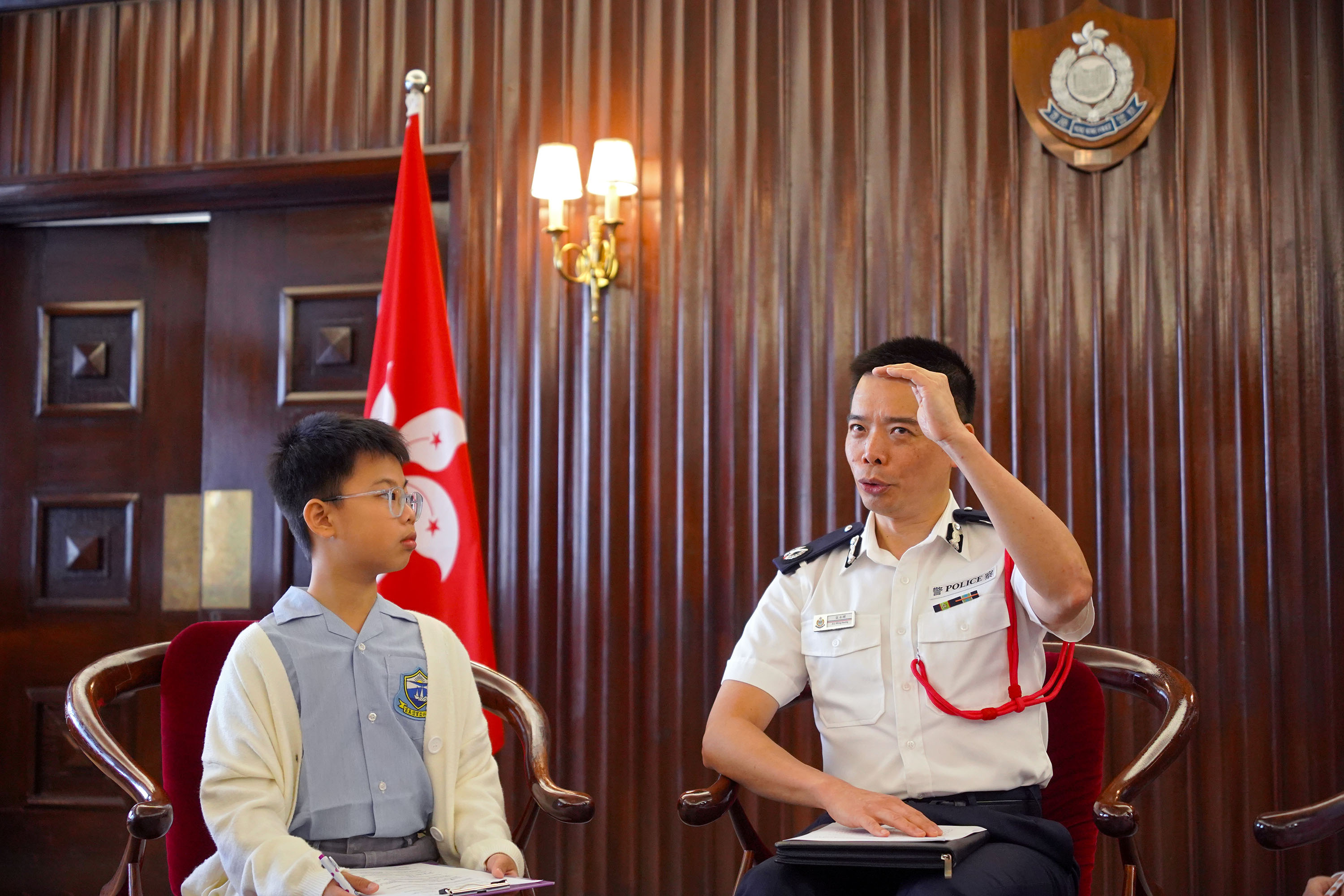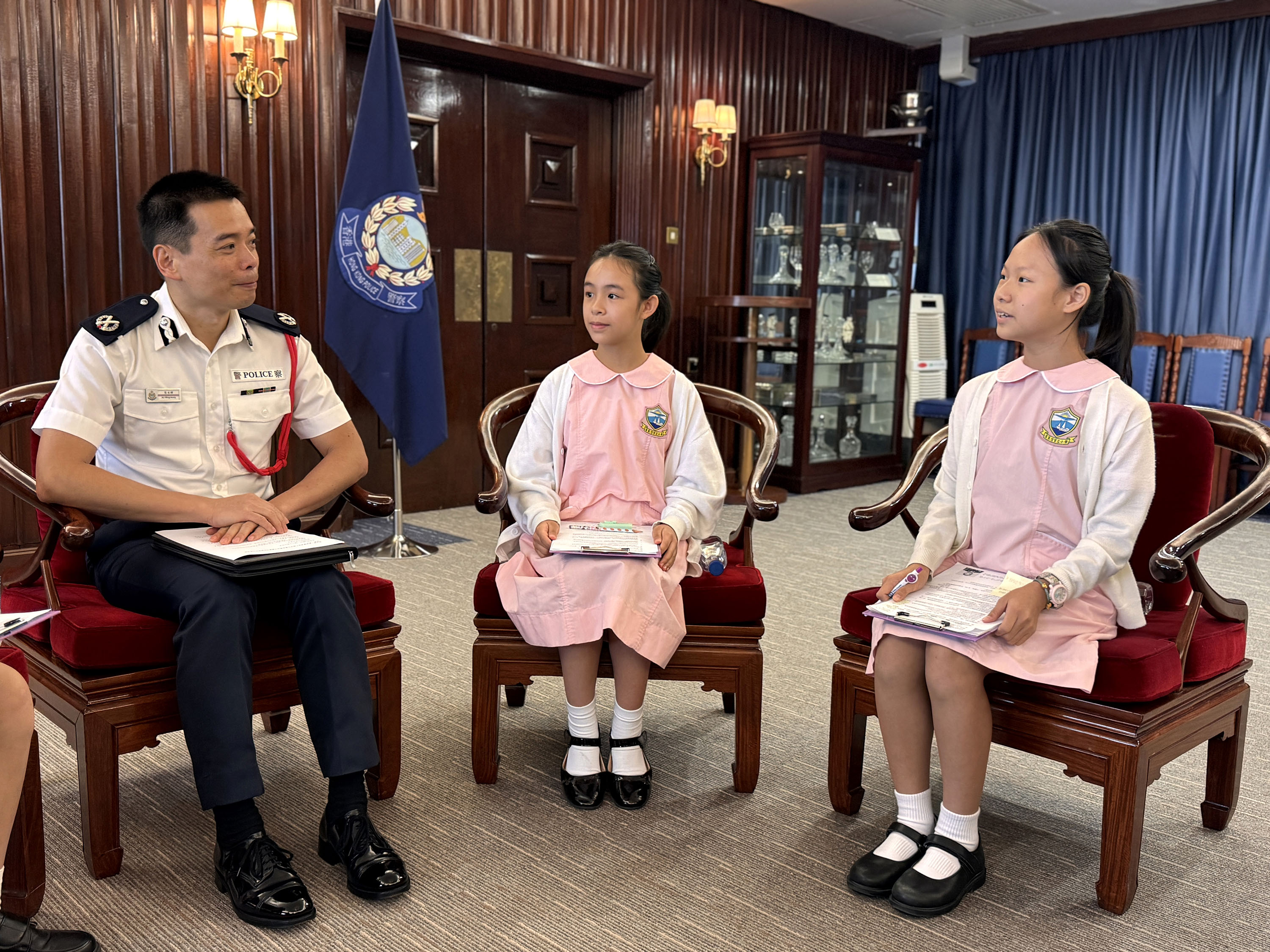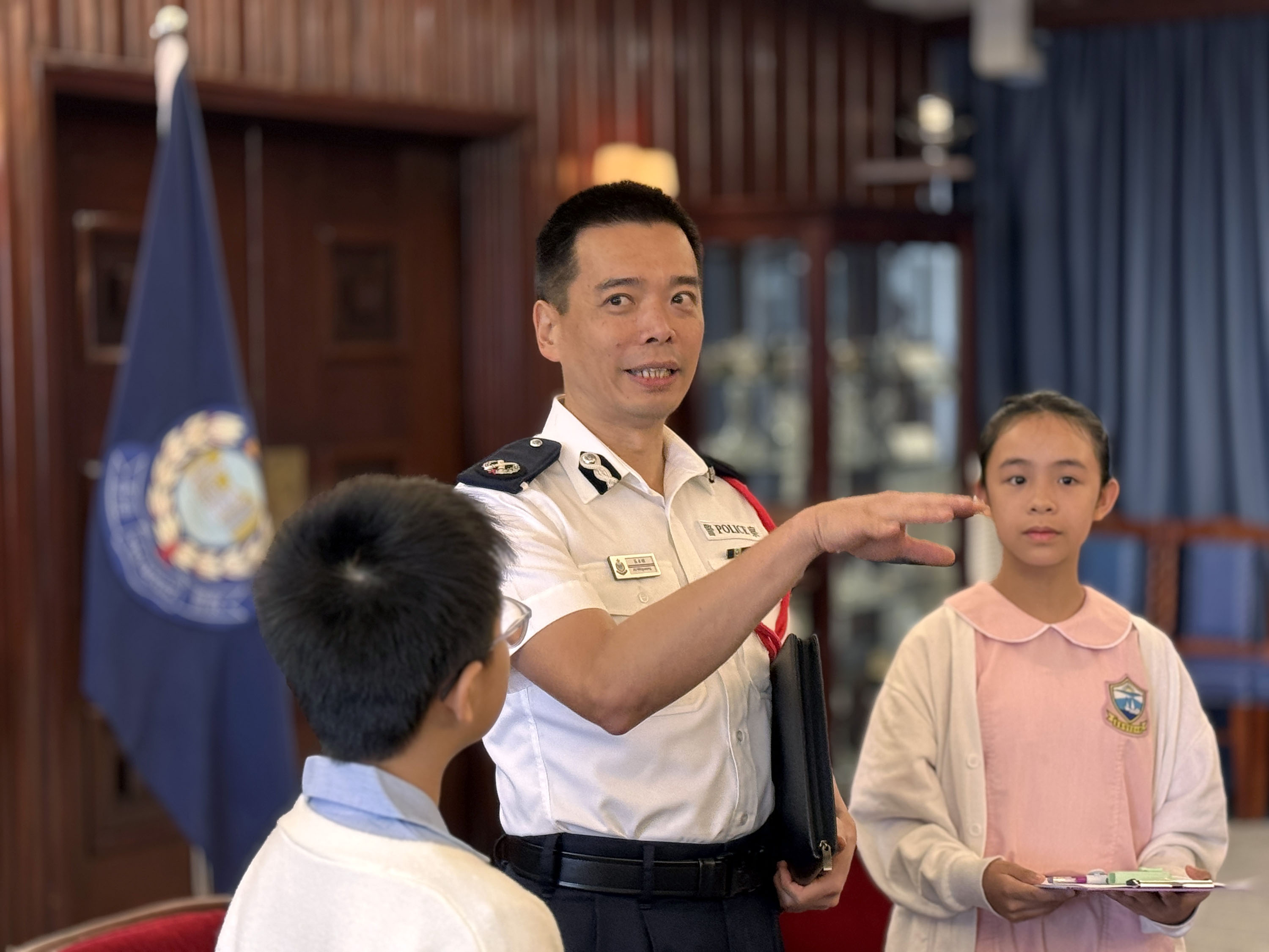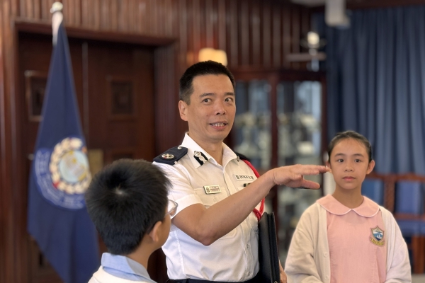 為籌備本年度第一期校訊,本校於2025年11月4日,派出五、六年級三位小記者蘇浩博、羅貝貽及余凱澄前往香港警察港島總區總部,採訪本校的傑出校友——港島總區指揮官區永樑先生。當天由校長領隊,一行七人前往位於軍器廠街的港島總區總部,在一間70年歷史的警官餐廳,與區學長傾談小學時期的生活,並請學長分享學習心得和為學弟學妹送上寄語。區學長除了接受訪問外,更帶領我們參觀及講解警官餐廳的歷史文物,讓我們大開眼界。大家若想多了解學長的小學生活,請留意本校第一期校訊的發布。現在搶先看看採訪當天的花絮吧!