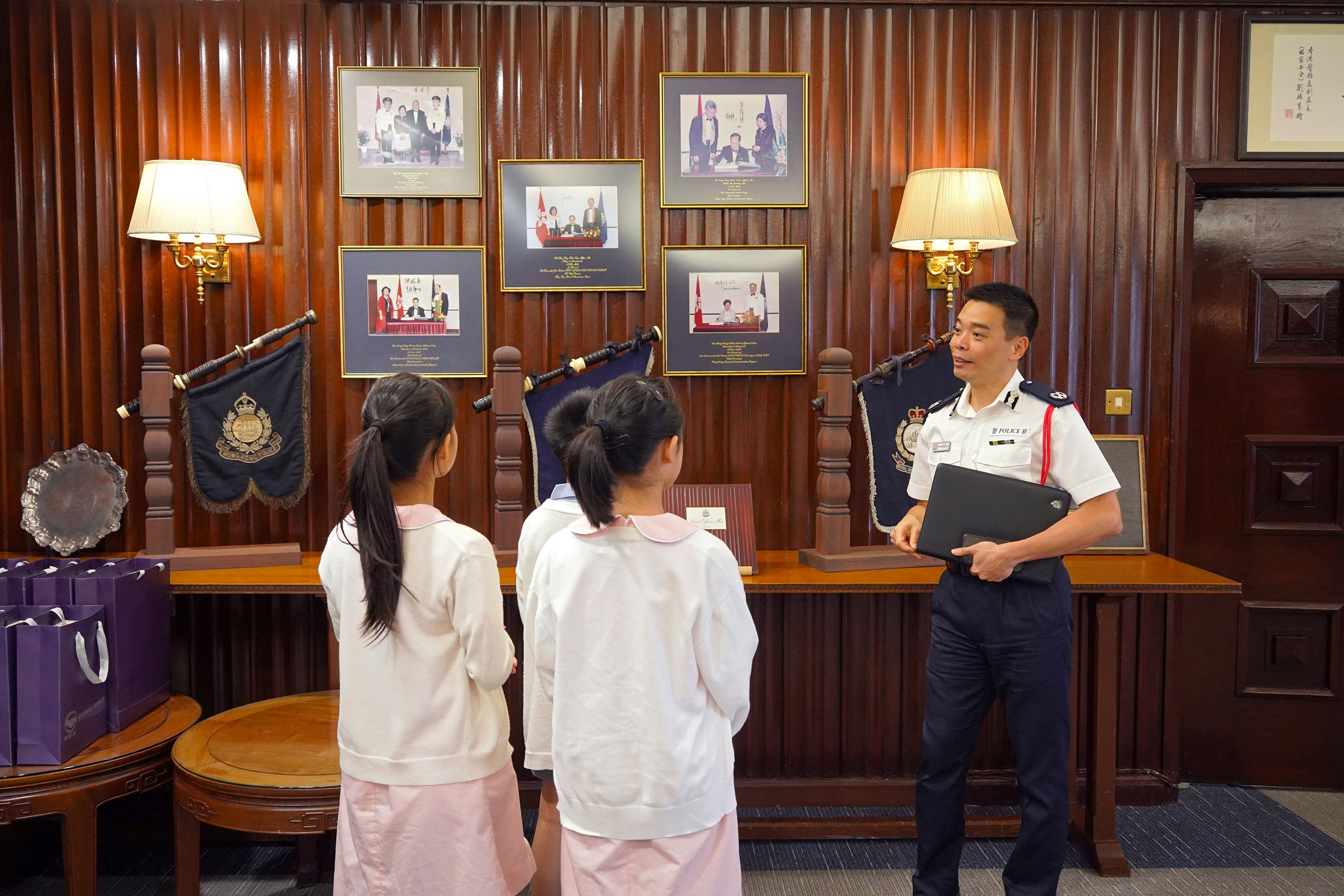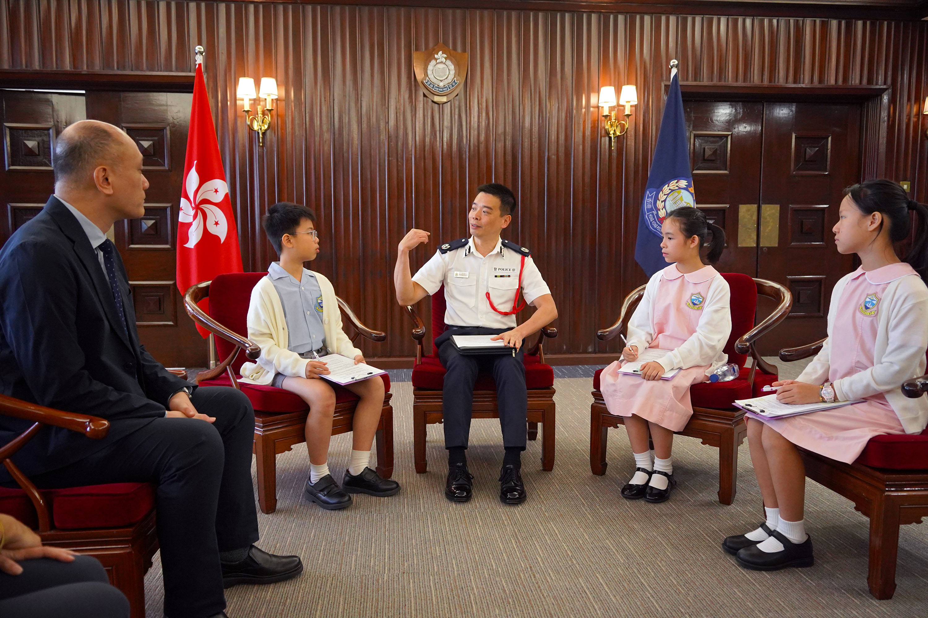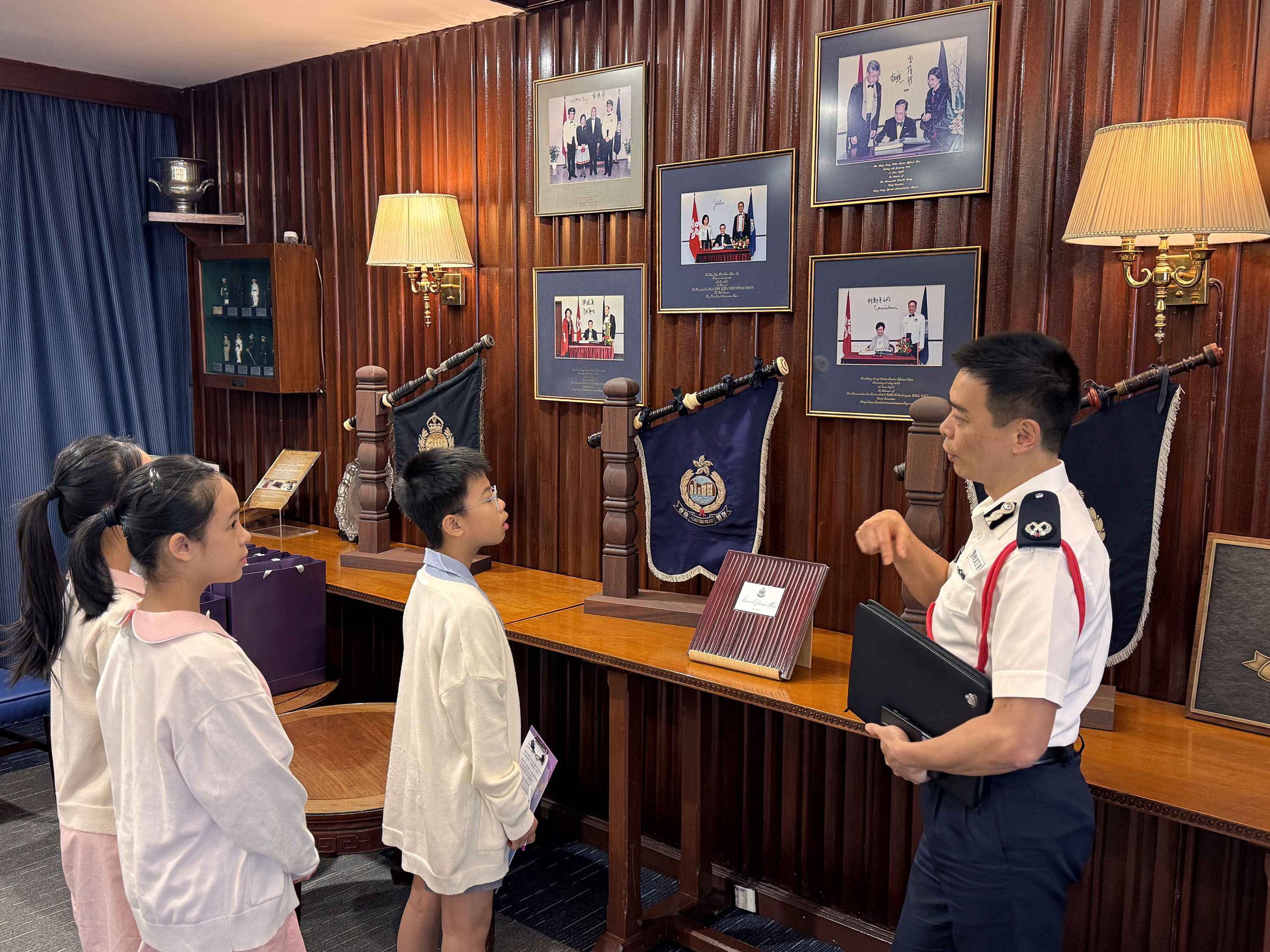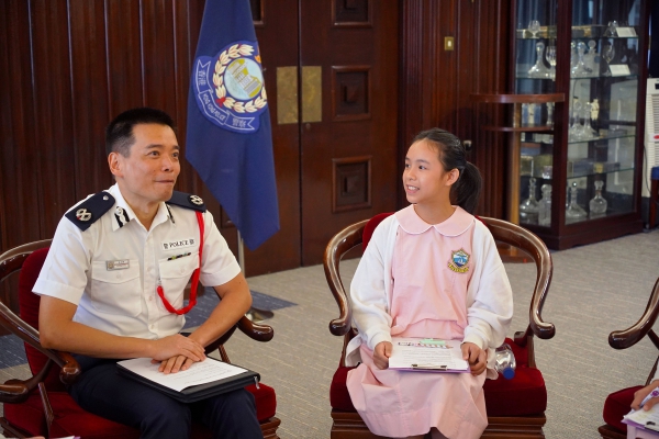 為籌備本年度第一期校訊,本校於2025年11月4日,派出五、六年級三位小記者蘇浩博、羅貝貽及余凱澄前往香港警察港島總區總部,採訪本校的傑出校友——港島總區指揮官區永樑先生。當天由校長領隊,一行七人前往位於軍器廠街的港島總區總部,在一間70年歷史的警官餐廳,與區學長傾談小學時期的生活,並請學長分享學習心得和為學弟學妹送上寄語。區學長除了接受訪問外,更帶領我們參觀及講解警官餐廳的歷史文物,讓我們大開眼界。大家若想多了解學長的小學生活,請留意本校第一期校訊的發布。現在搶先看看採訪當天的花絮吧!