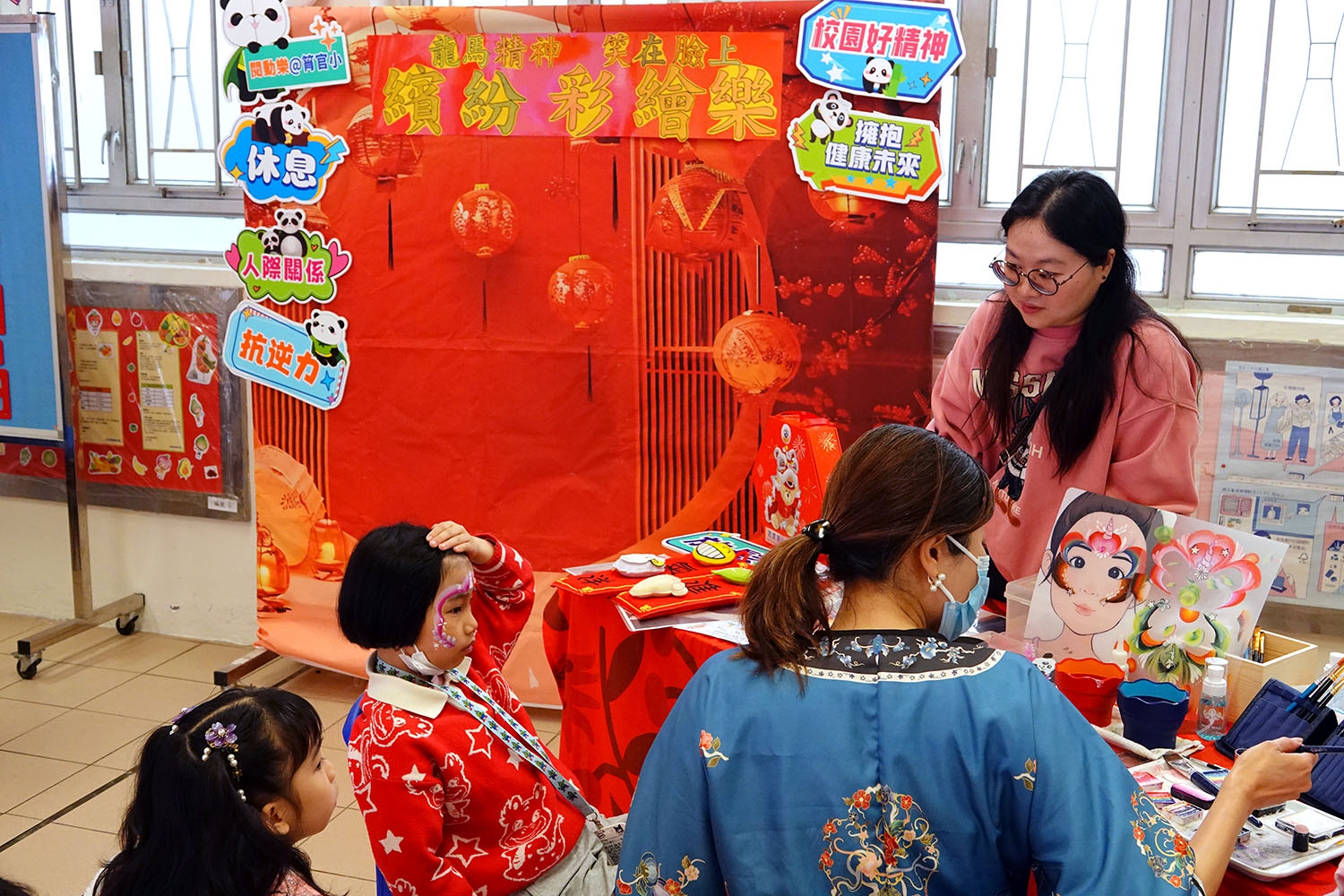 本校於2026年2月6日舉辦主題活動日──「中華文化日」,學生支援組設置了「『龍馬精神‧笑在臉上』繽紛彩繪樂」攤位,以面部彩繪的形式進行活動。由老師及學生守護大使親自為同學在臉部及手背上繪製各種富有特色的中式圖案,讓學生透過色彩與圖案表達情感,體驗創作帶來的心靈放鬆與正能量,為校園增添節日的歡樂氣氛。