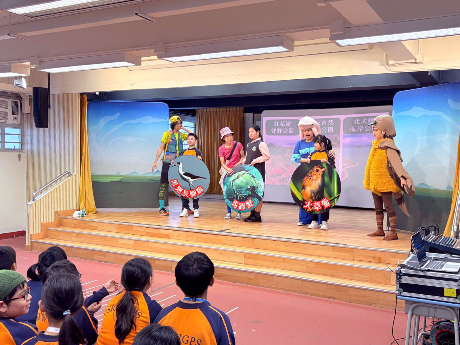 為讓學生學習自然保育及生物多樣性兩者的重要性,本校參與「環境及生態局-可持續發展學校(小學)外展計劃」,邀請「黑暗劇場」到校演出互動話劇《超現實生態遊》,讓學生透過話劇認識香港瀕危物種,學習愛護大自然的重要性。