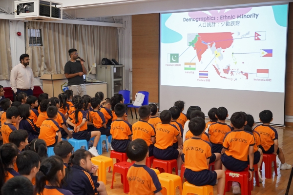 為加強學生對不同少數族裔的認識,學習尊重不同的文化,本校邀請民政事務總署種族關係組的職員到校為一至三年級的學生舉行「種族共融講座」,讓學生更了解香港常見少數族裔的文化。