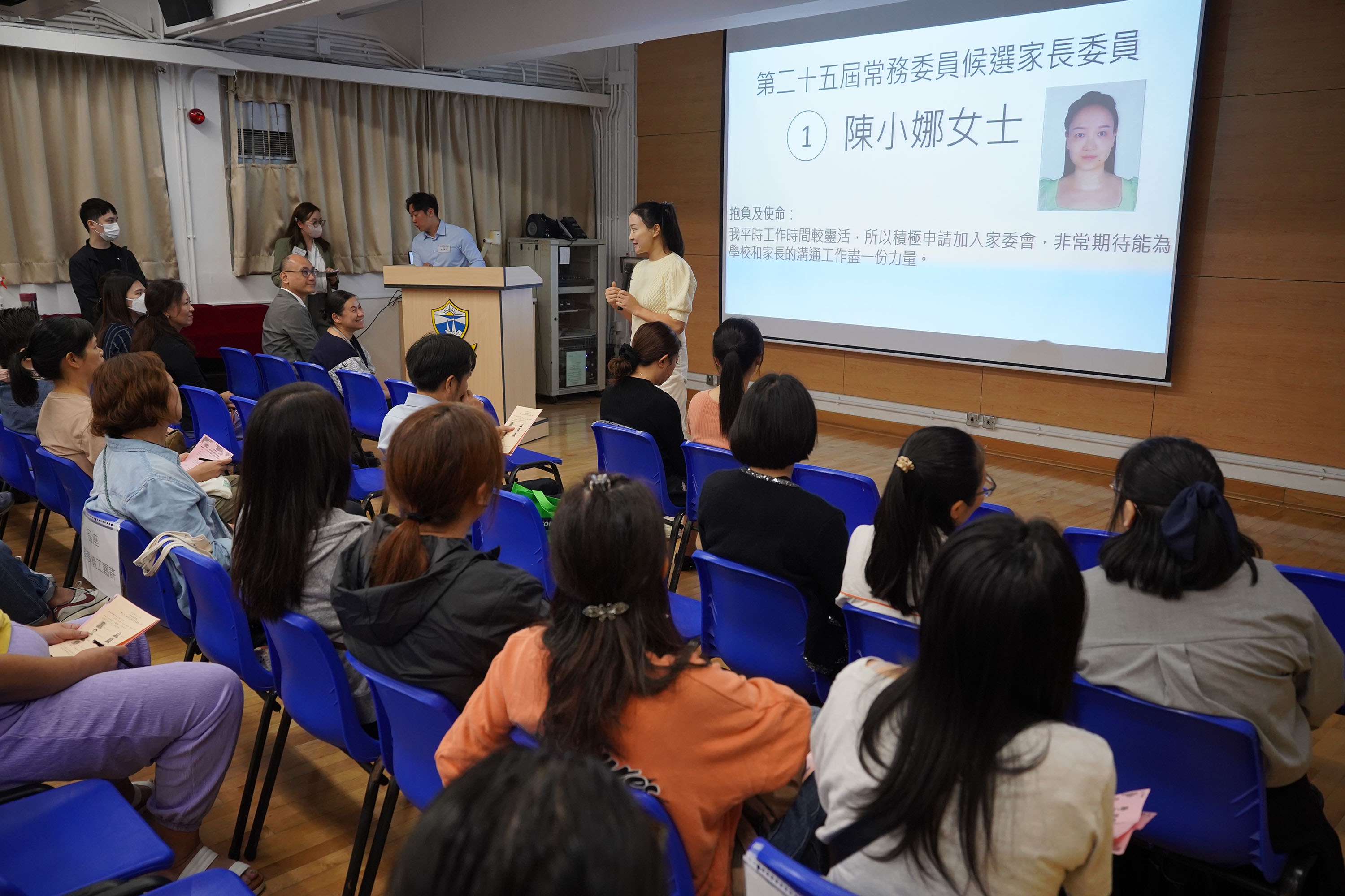 本屆有七名家長參選,競逐6個職位。當選的6個家長委員分別為:莫惠琪女士、曾麗英女士、朱潔女士、張藝婷女士、蘇健云女士、陳小娜女士(排名不分先後),林高東先生為本屆的增補委員。最後,由本校社工主持講座,分享親子溝通的心得。當天設有茶點供家長及留校生享用,大會結束後,家長到禮堂取環保校服,當天活動順利結束。衷心感謝會員的支持,期待下年度的會員大會再與大家聚首一堂。