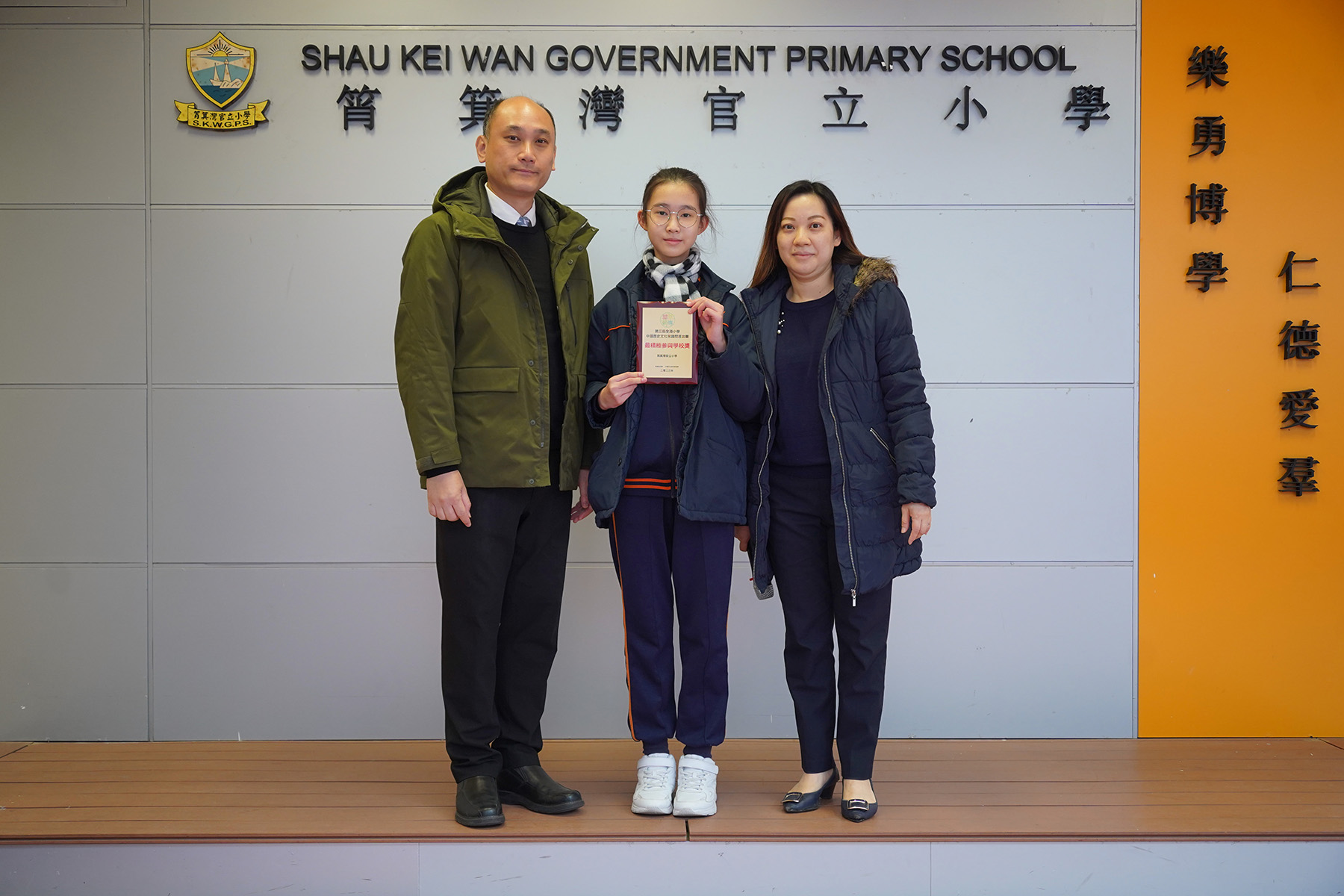 為加深學生對中國歷史文化的認識,提高學習興趣,本校參加由教育局主辦、中國文化研究院協辦「華萃薪傳 ─ 第三屆全港小學中國歷史文化常識問答比賽」,本校榮獲「最積極參與獎」。學校於1月26日早會上進行頒獎儀式,由校長頒發獎項給學生代表6A班姚沛盈同學。