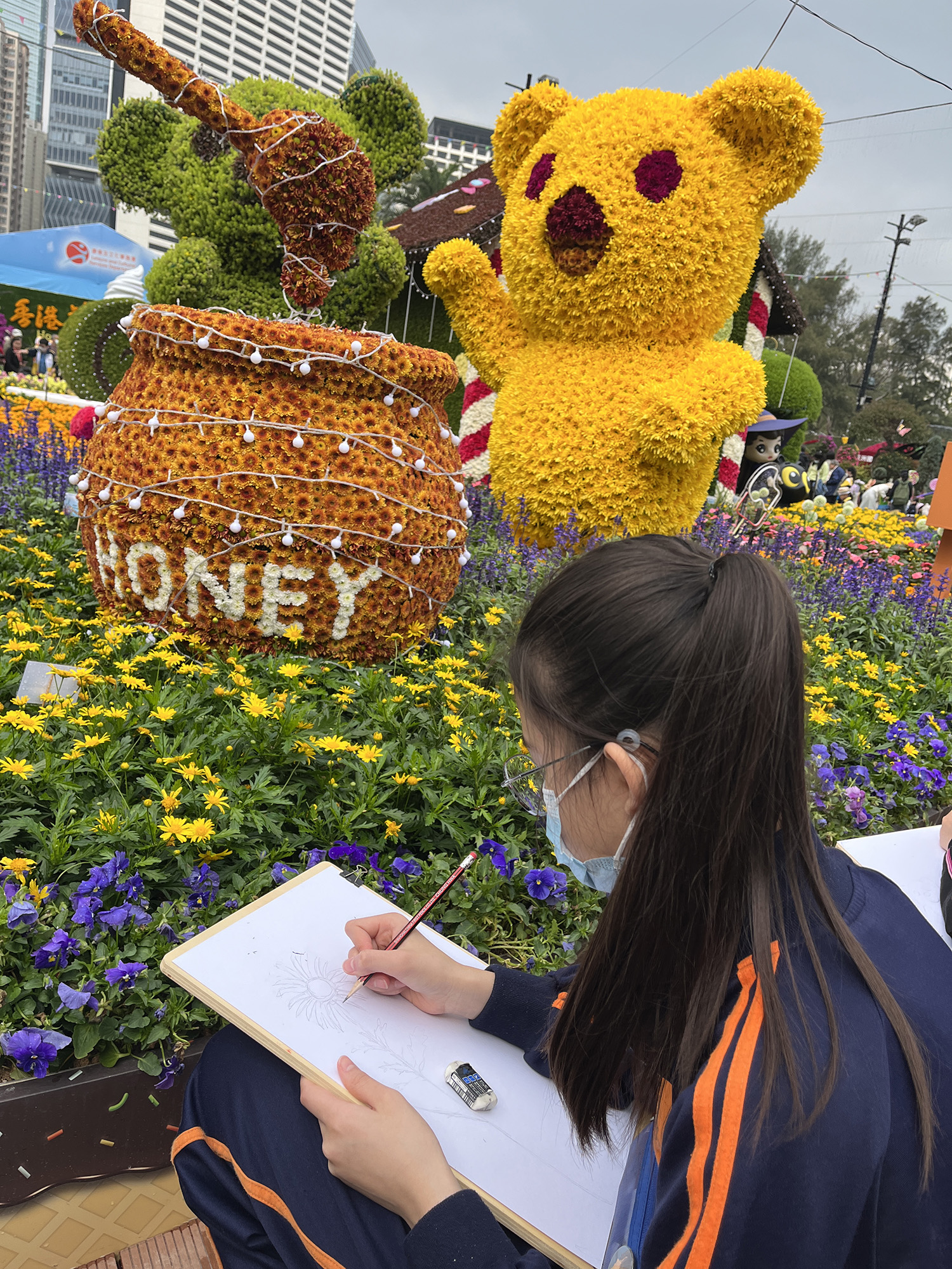 本校8位同學於2024年3月15日參加由康樂及文化事務署舉辦之「二零二四年香港花卉展覽賽馬會學童繪畫比賽」。是次比賽學生除了可在會場內觀賞極具觀賞價值的花卉展品和別出心裁的園林實景,更可透過同學的筆觸,即場繪畫,提升寫生技巧,加強評賞的能力,同時亦可提高同學對愛護植物和自然環境的意識。