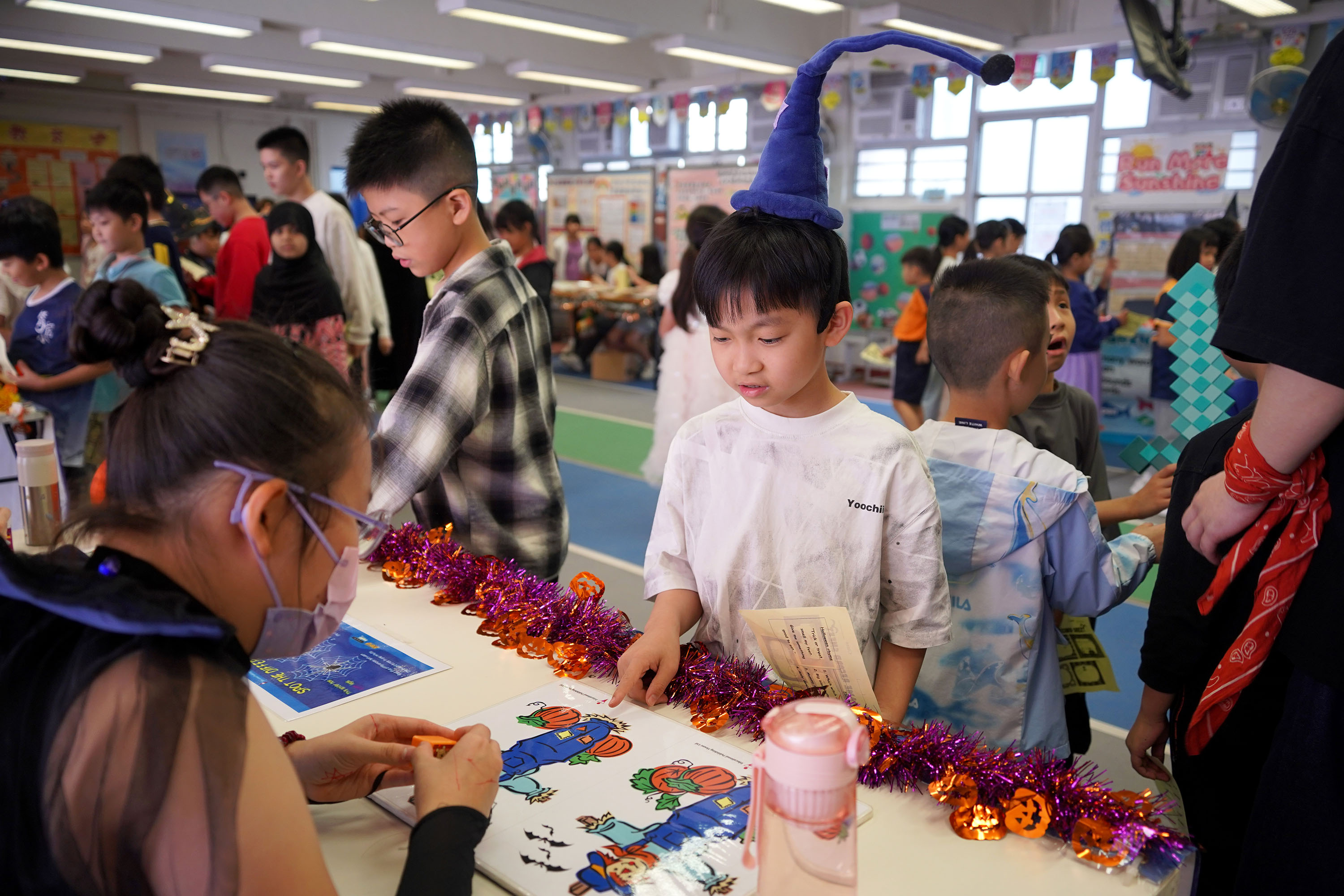 On Halloween Day, our school was beautifully decorated, setting a truly festive and spooky atmosphere. Both students and teachers donned fantastic costumes! Students eagerly engaged in interactive games at the English booths and enjoyed the Trick-or-Treat Parade.