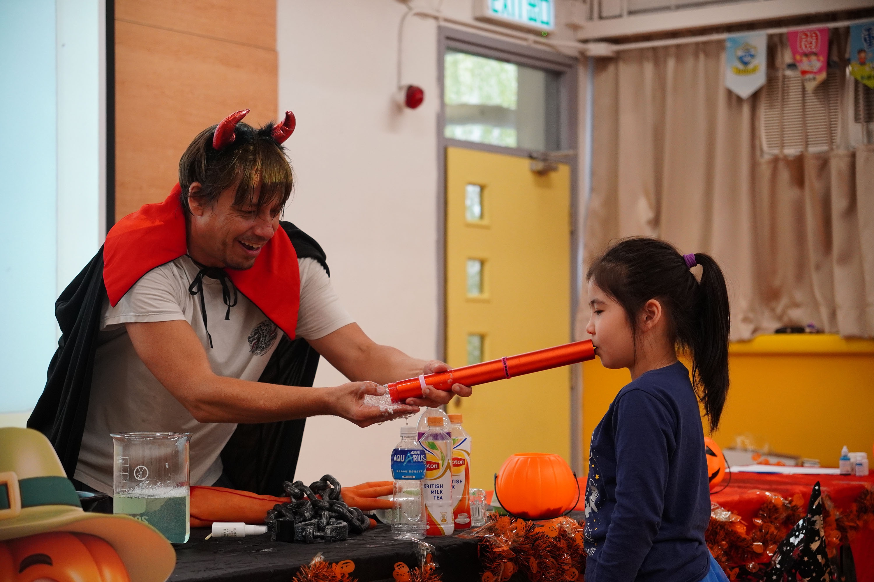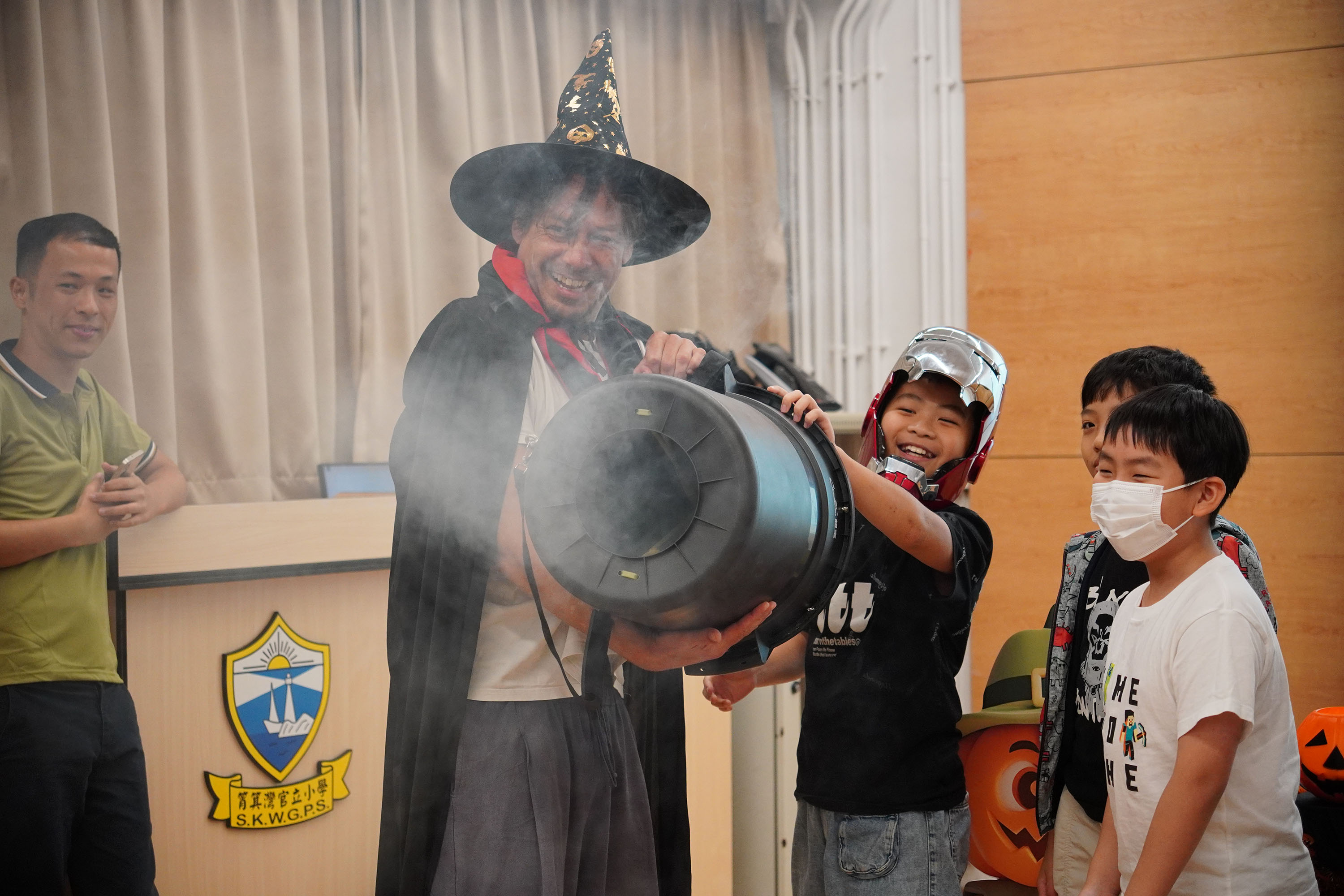 Students also had a pleasurable time at the STEAM party show, where we presented a dramatic Superhero story. In this tale, students gained superpowers to defeat evil spirits by conducting a series of scientific experiments. They were captivated by the stunning magical effects produced by the air cannon, bubbling potions, fire in the palm, and dry ice smoke!